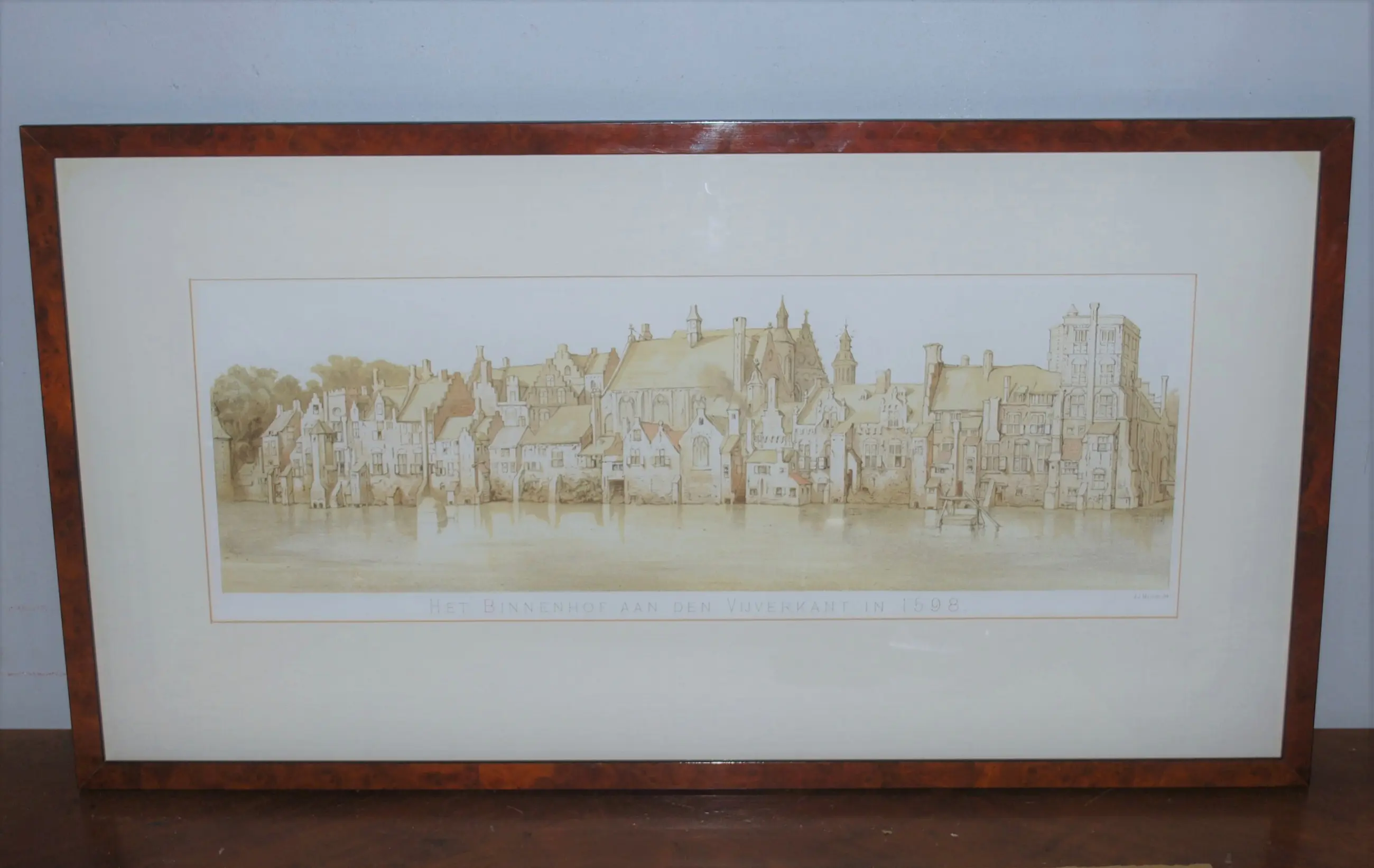 Maat 22x62 cm = uitsnede passepartout. Volgens het Rijksmuseum heeft dit werk een oplage van 20. Litho naar het werk van Klinkenberg. Achter passepartout en glas. In een hoogwaardige lijst in goede staat.