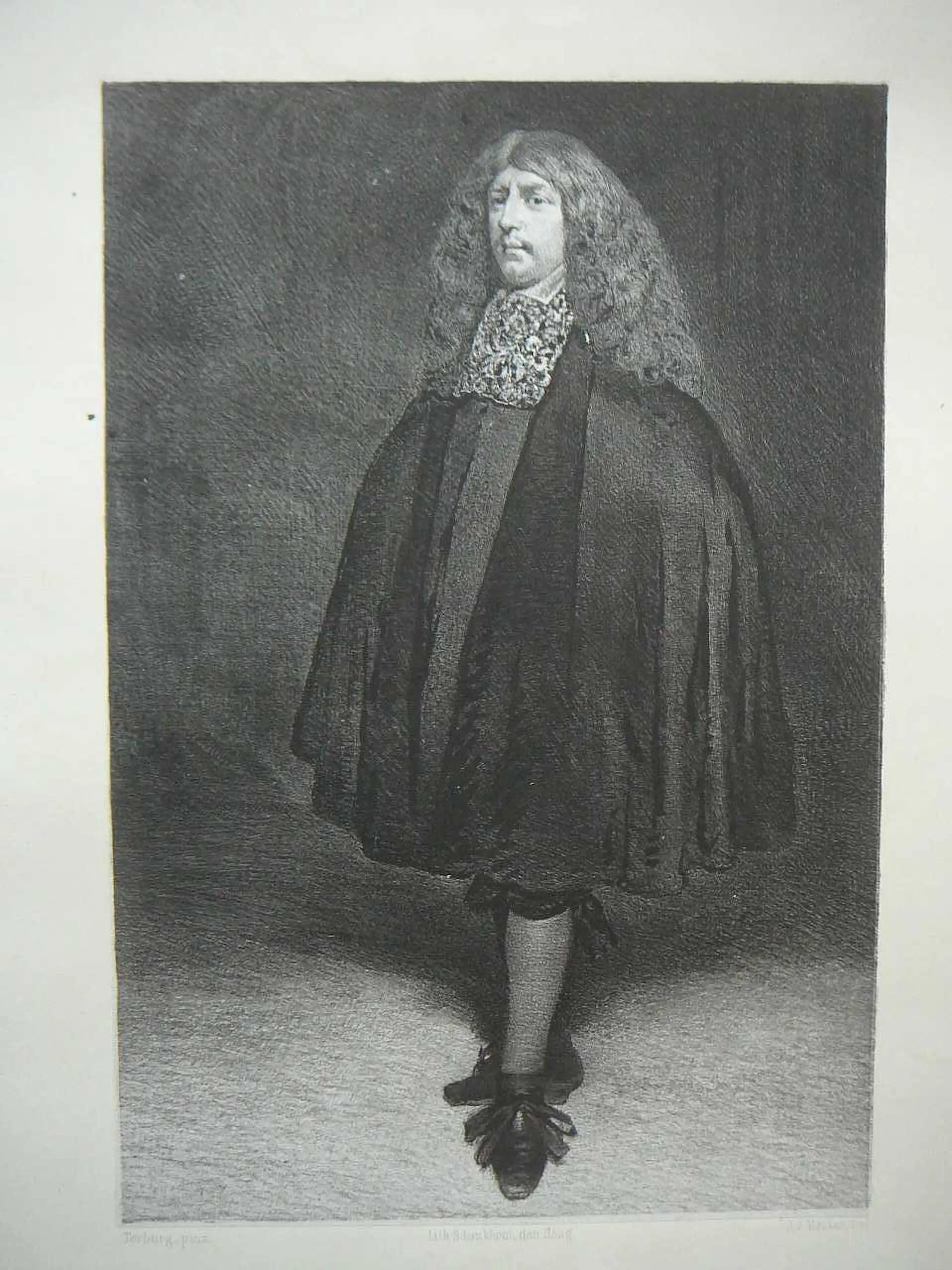 Mooie Litho Mans portret naar Terburg (Terborgh) Terburg Pinx en J.J. Mesker Del gedrukt door de Ned steen Drukkerij