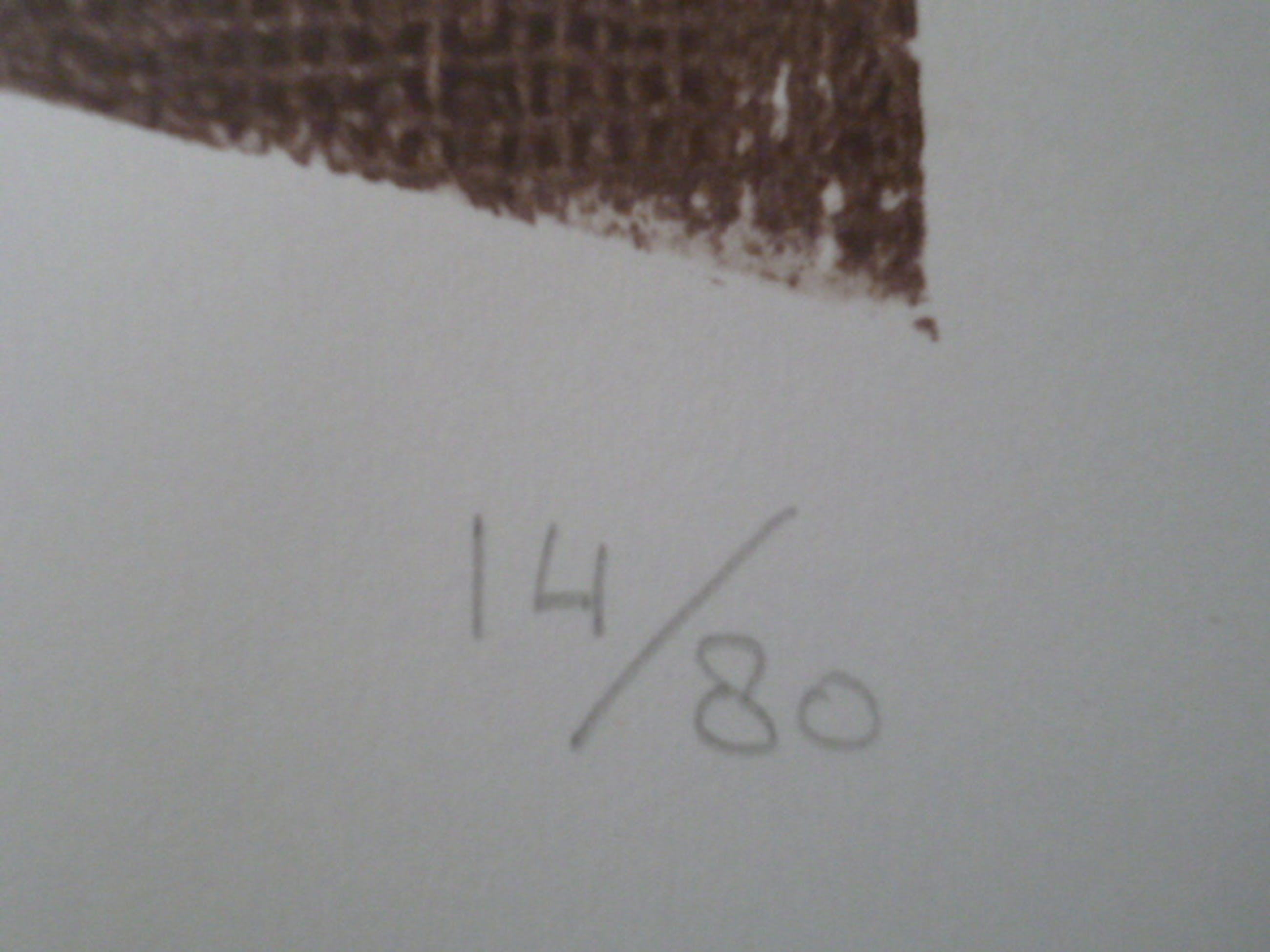 Kleurenlitho, potlood gesigneerd en gedateerd '79 linksonder. Genummerd 14/80 rechtsonder.