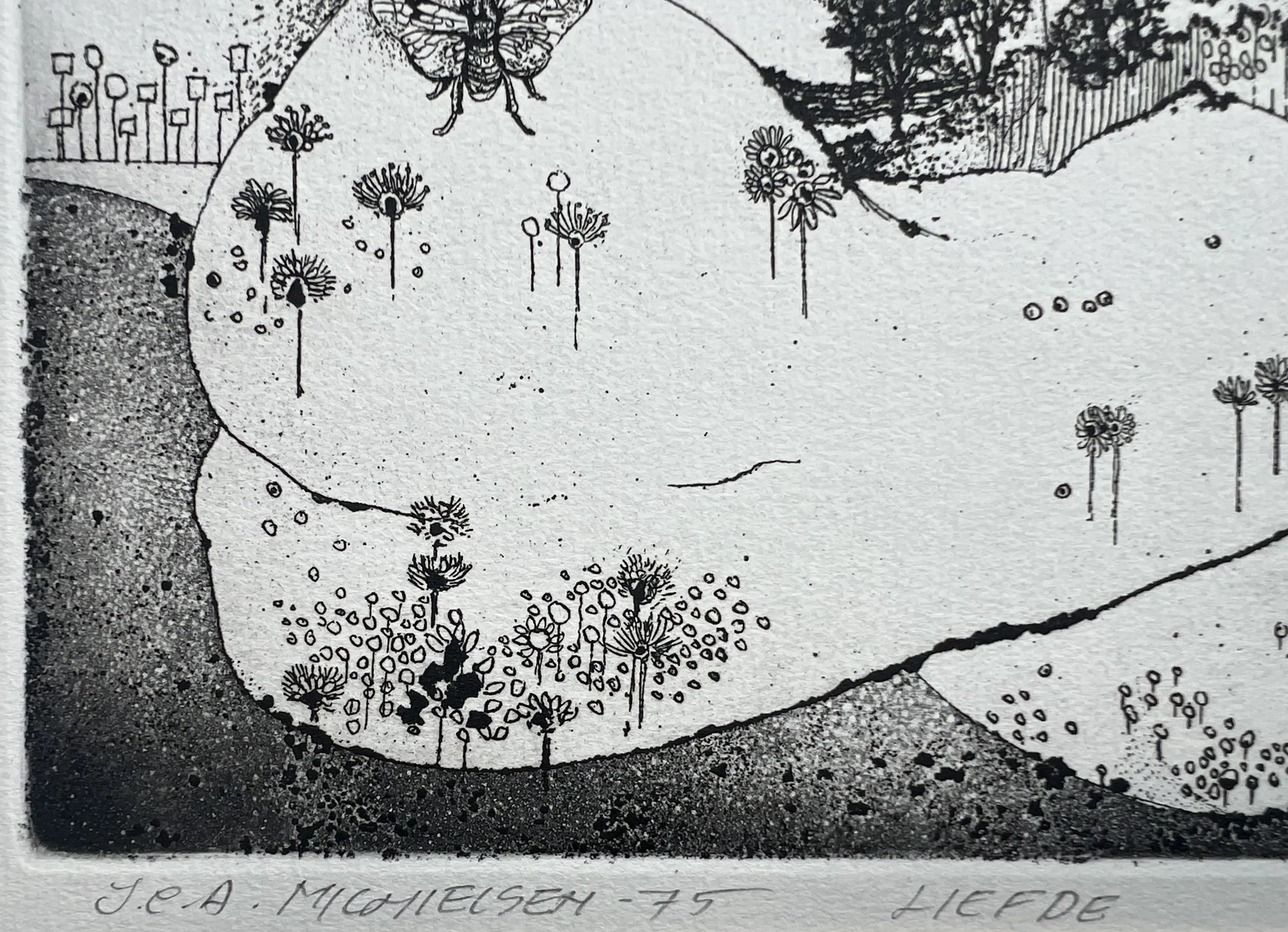 Fraaie ets, vol symboliek, van de hand van Jan Michielsen.