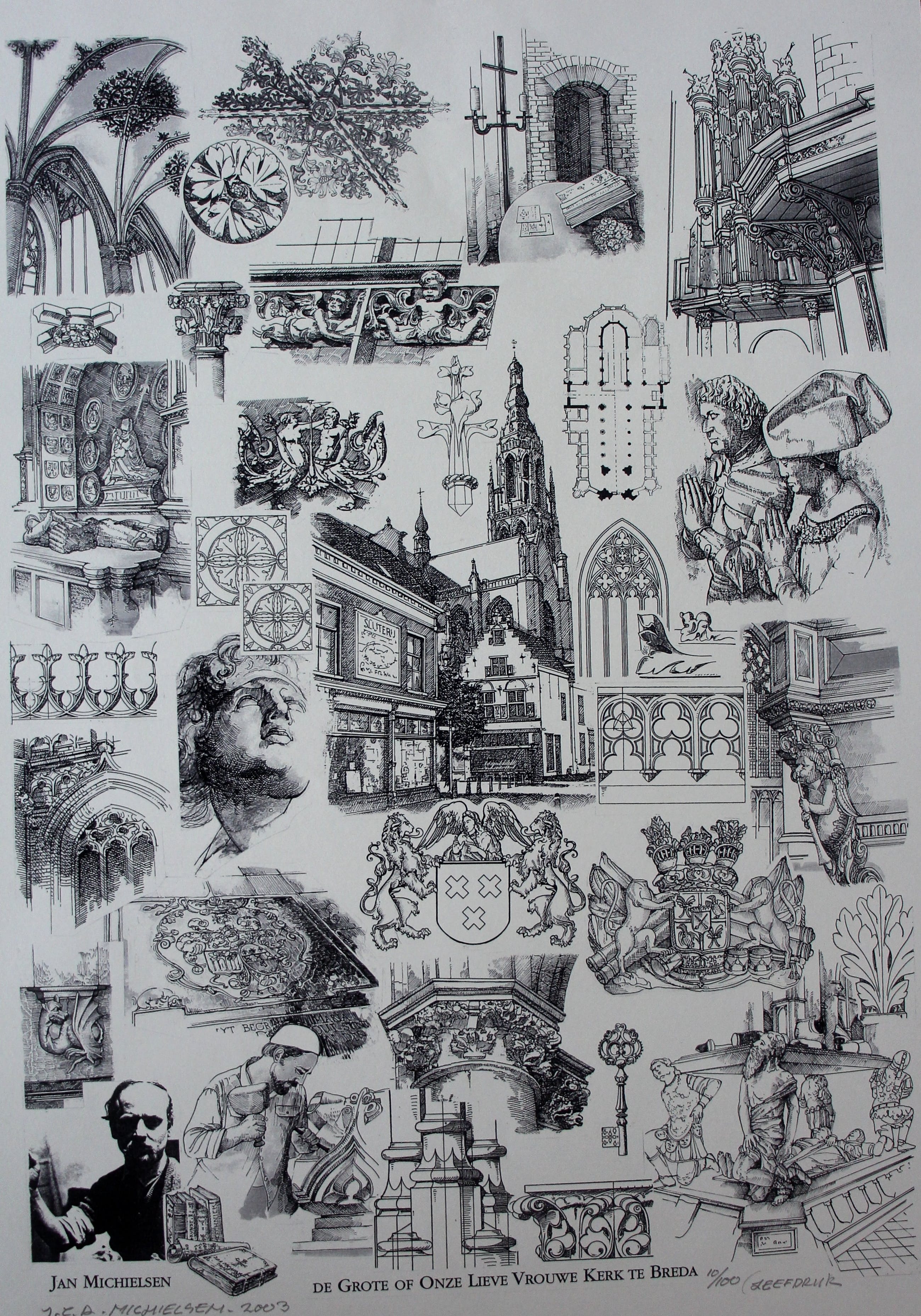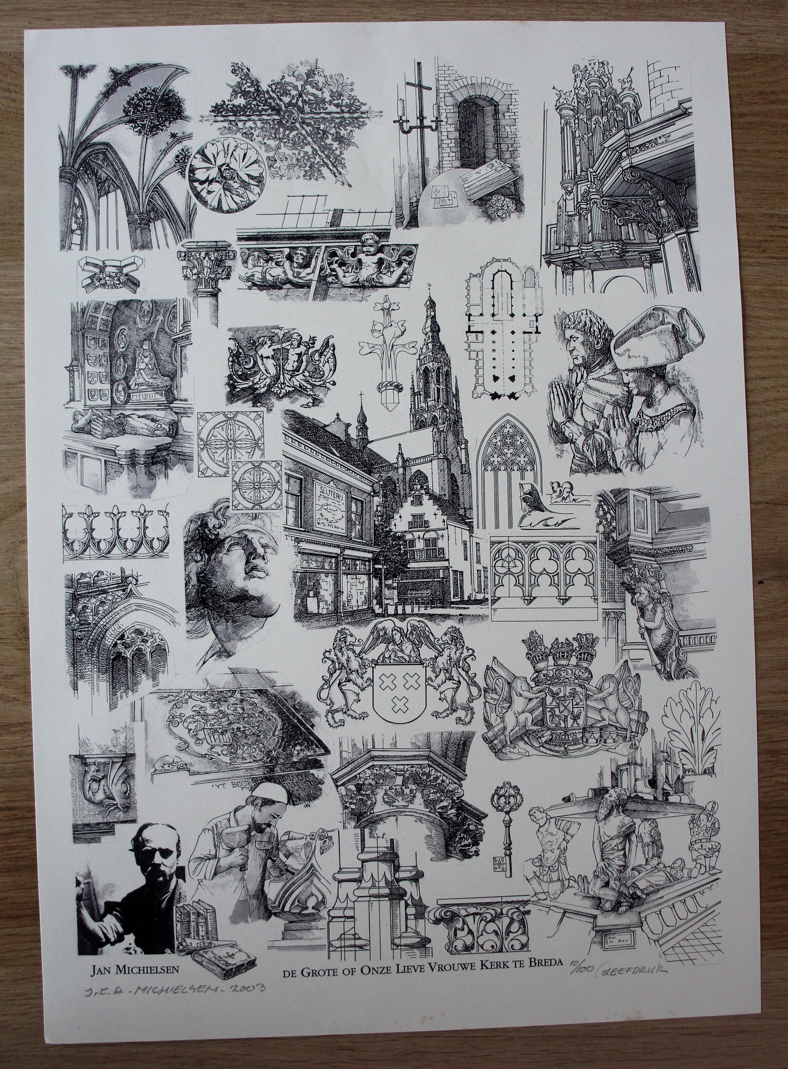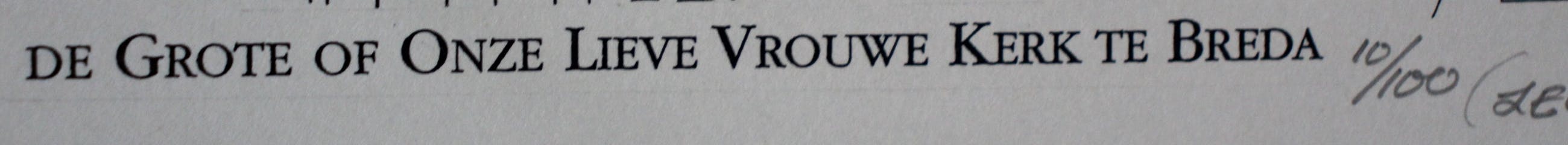Zeefdruk van Jan Michielsen. Titel: De grote of Onze Lieve Vrouwe Kerk te Breda. Nummer: 10/100. Jaar: 2003. Afmetingen blad : H42 x b30cm; Afmetingen voorstelling: H38.5 x b26.5cm. Het werk is links onderaan, met potlood, gesigneerd door de kunstenaar. De authenticiteit van dit werk wordt volledig gegarandeerd. Een certificaat van echtheid kan, op aanvraag, worden gemaild.