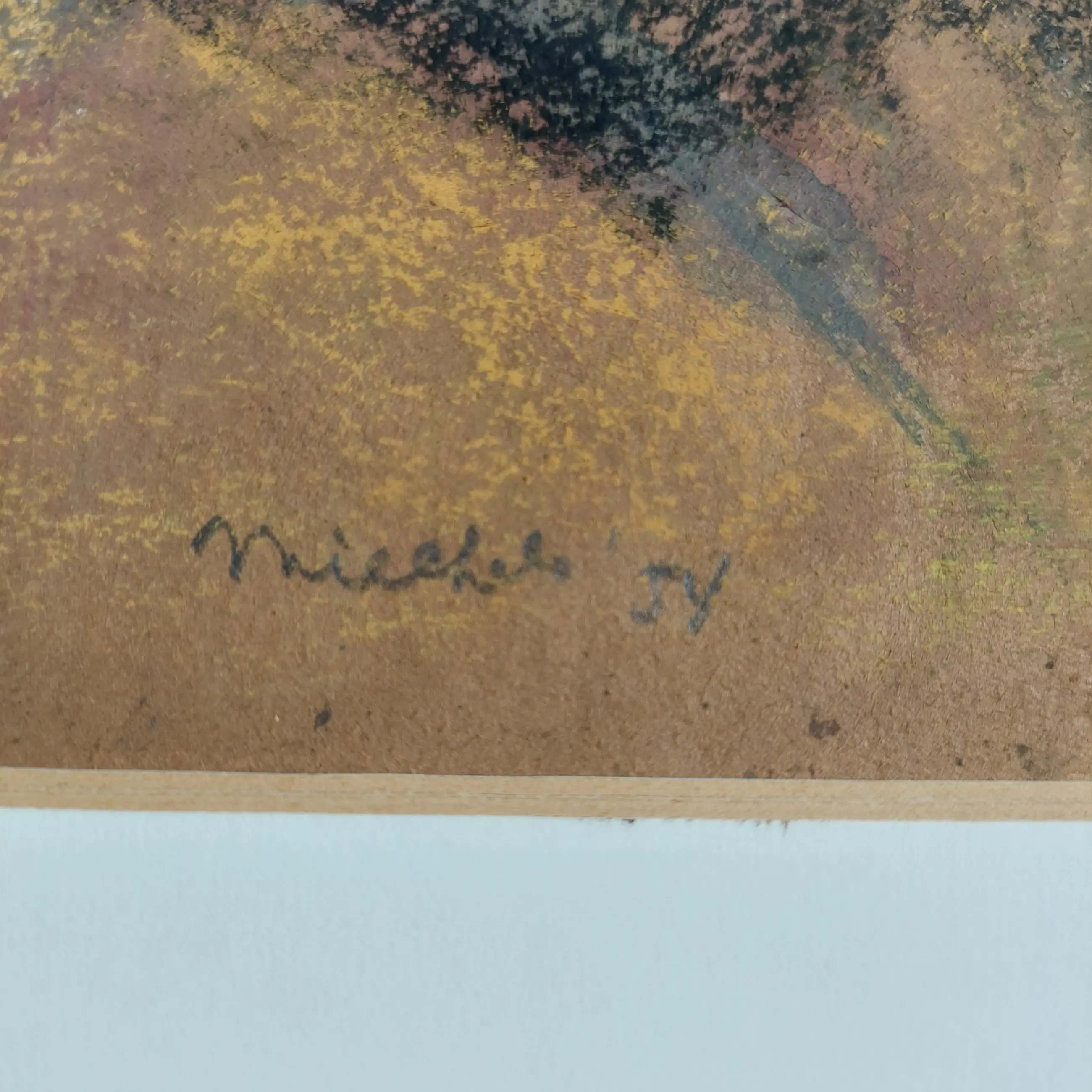 Een origineel werk gemaakt met krijt van de kunstenaar Jan Miechels in mooie tinten.