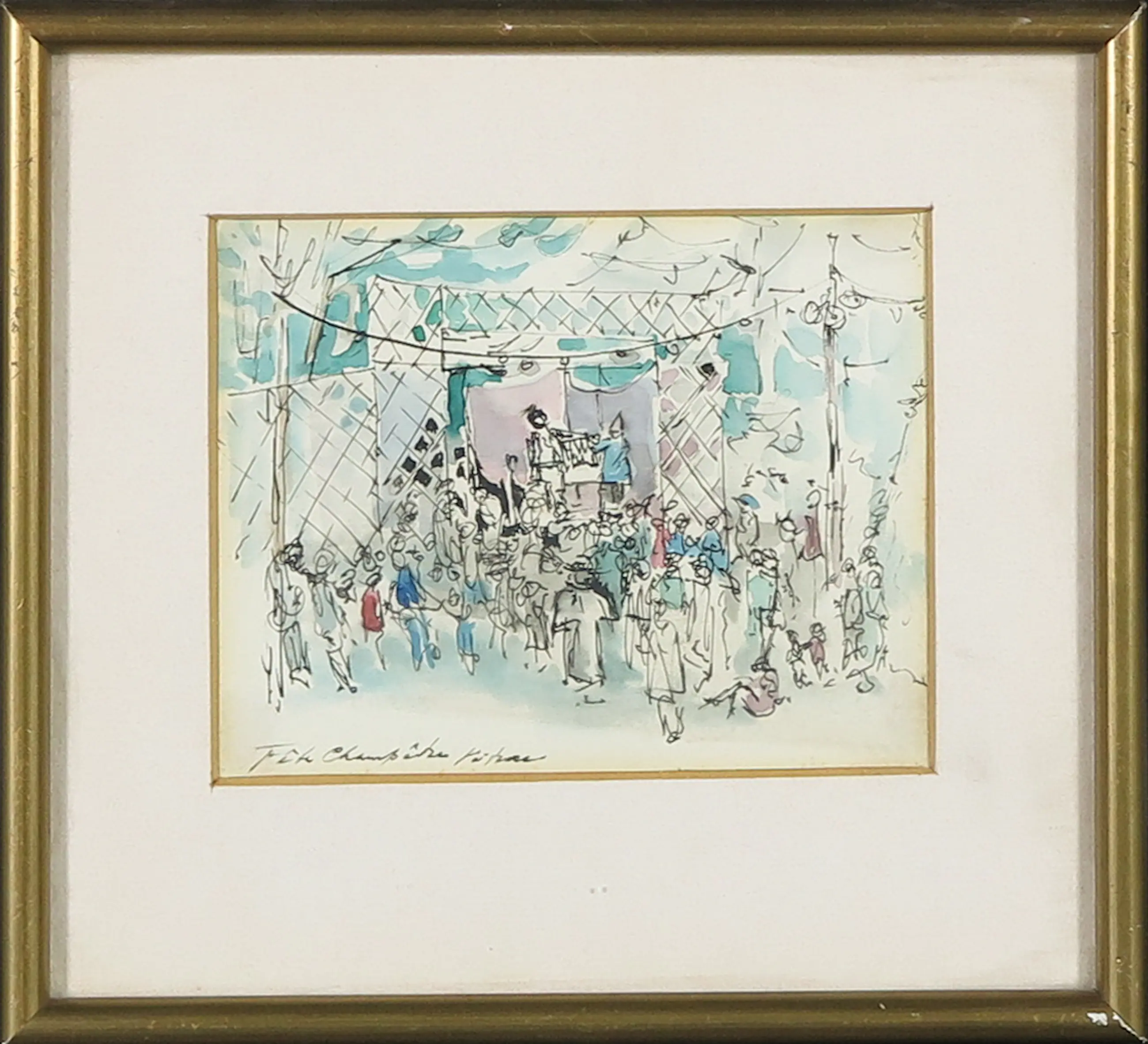 Lot van 6 kleine tekeningen in gemengde techniek van Jan Miechels. Niet alle werken zijn gesigneerd.