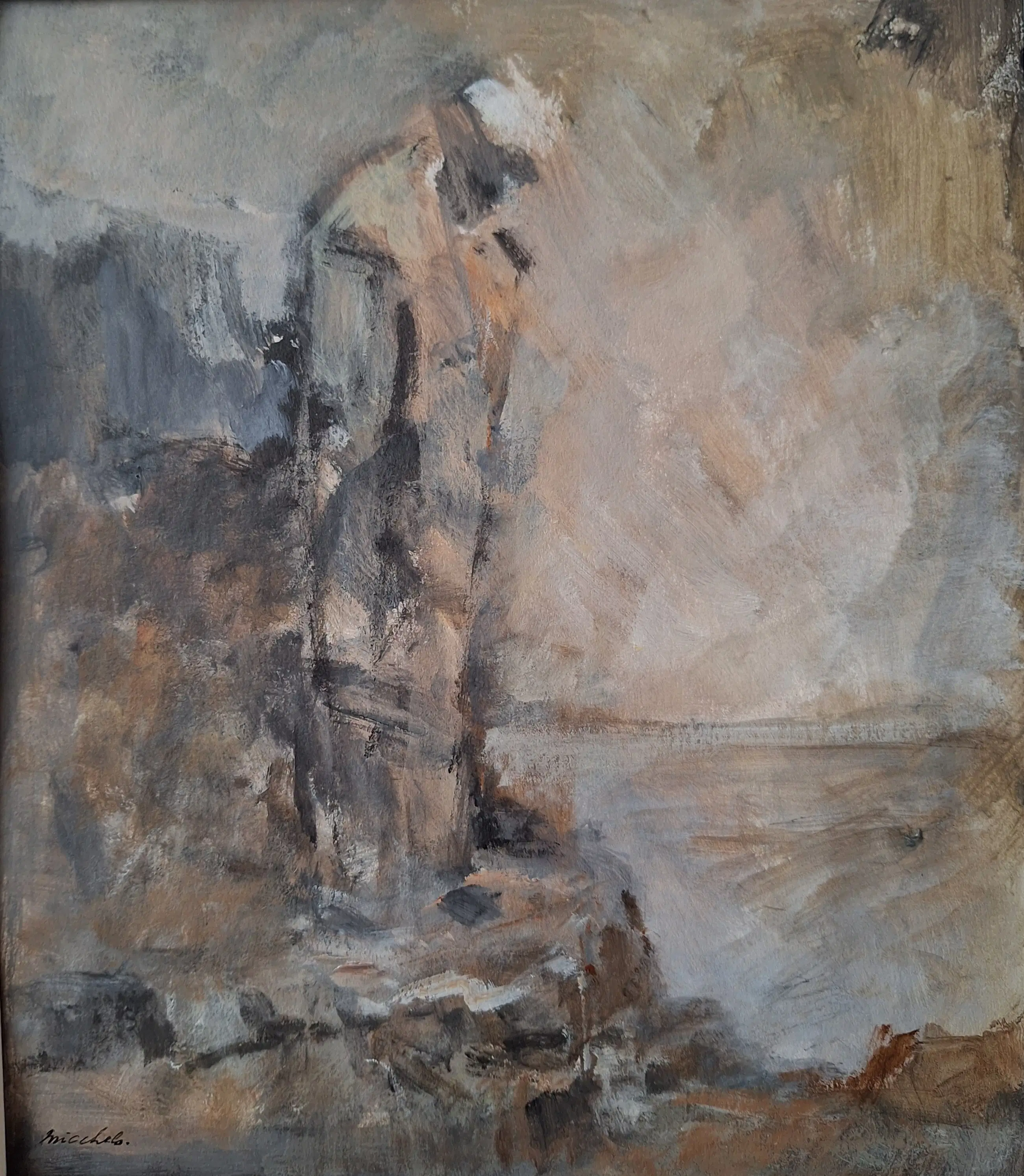 Zeer fraaie gouache van Jan Miechels (1916-1996). Hand gesigneerd links onderin.