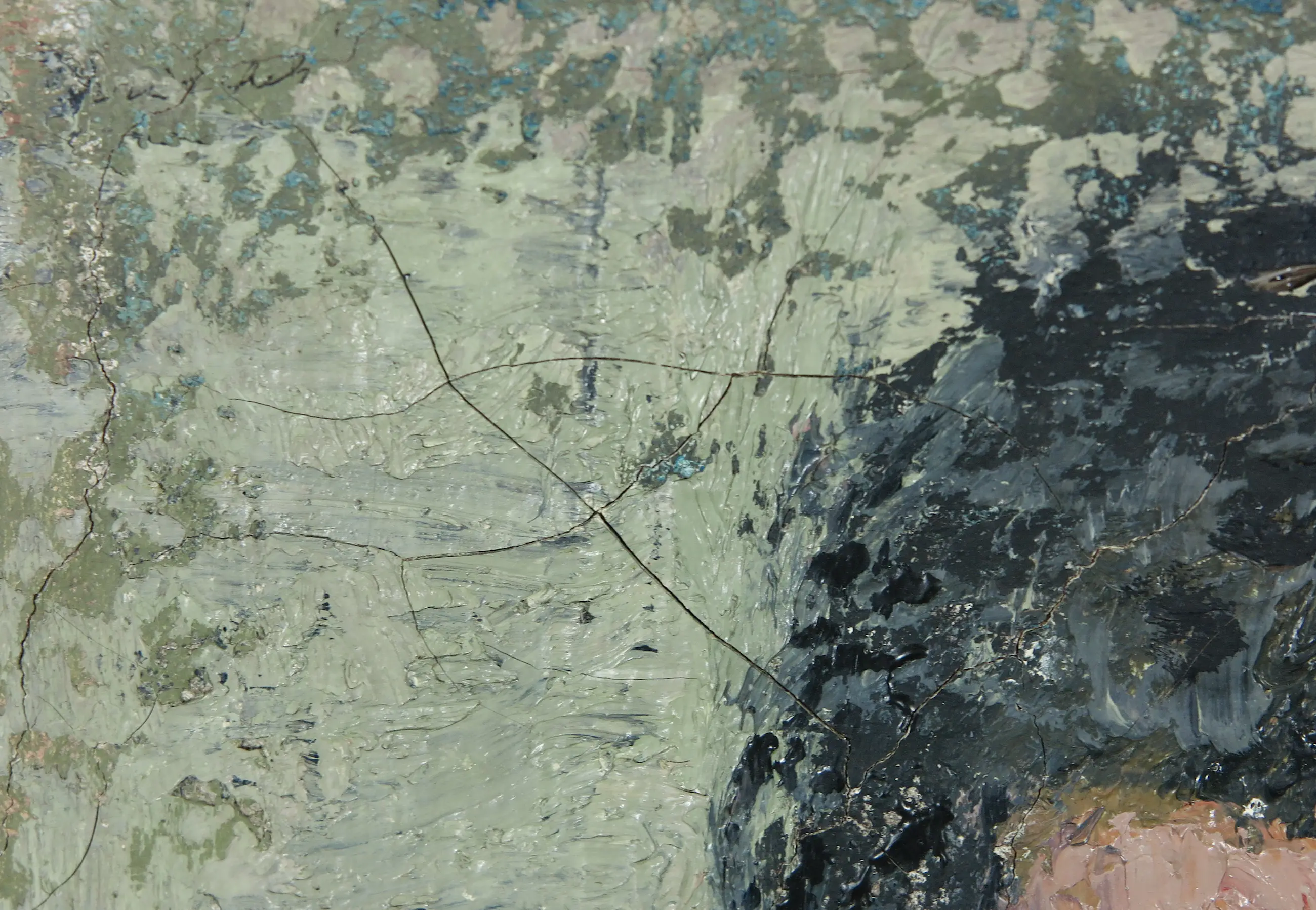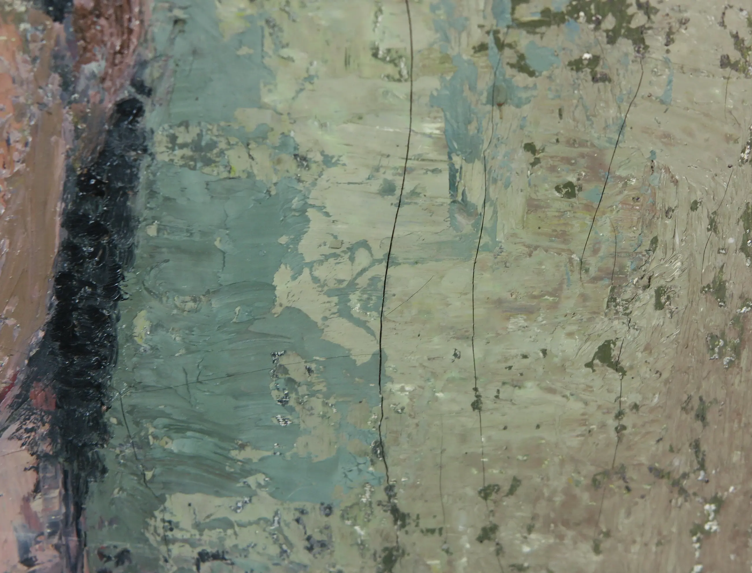 Het werk heeft een aantal barsten in de verflaag, zie detailfoto's.