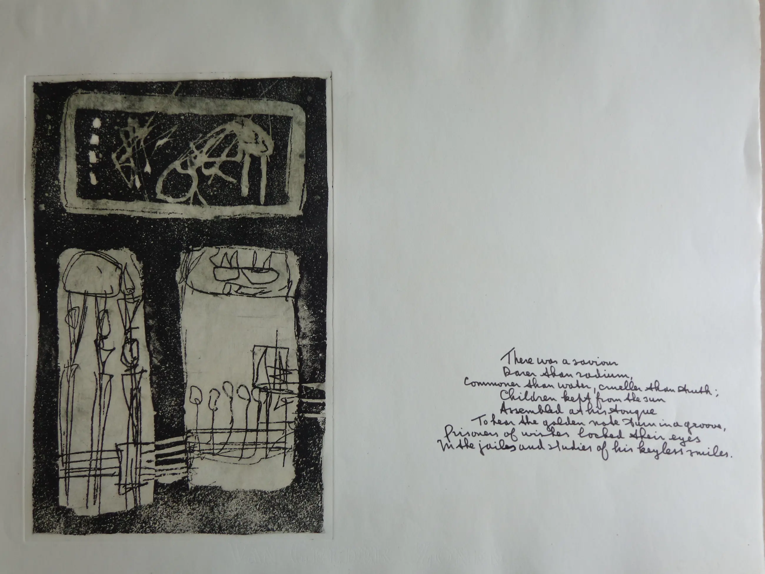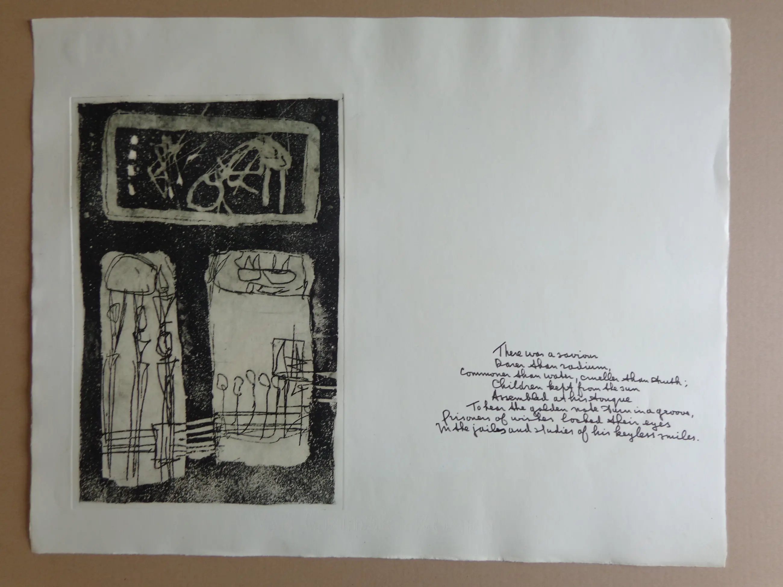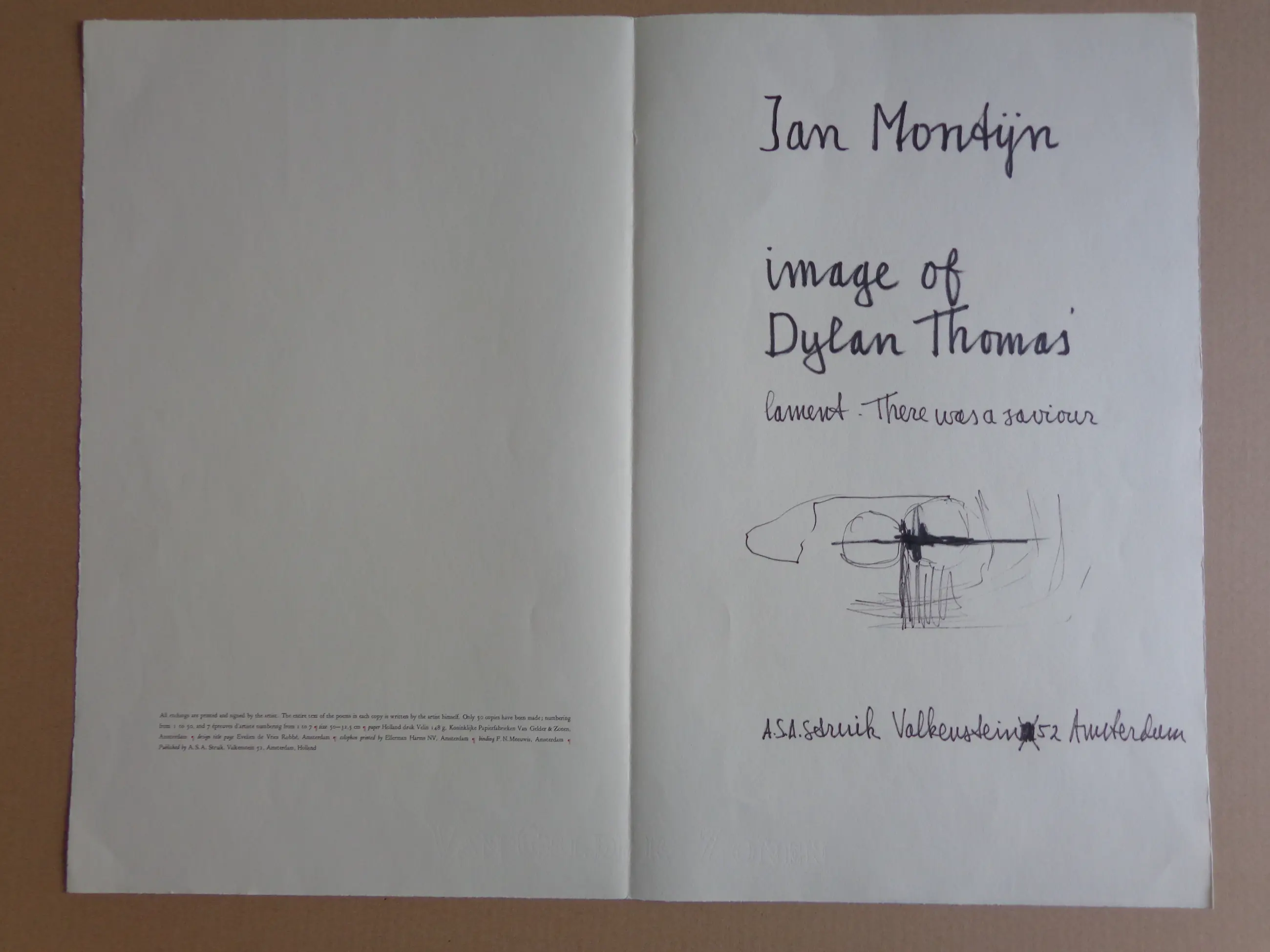 Afkomstig uit kunstmap, restant van de uitgeverij: "Image of Dylan Thomas", Lament", There was a saviour", uitgegeven door A.S.A. Struik, Amsterdam, 1964 (zie laatste foto, titelblad niet meegeleverd).