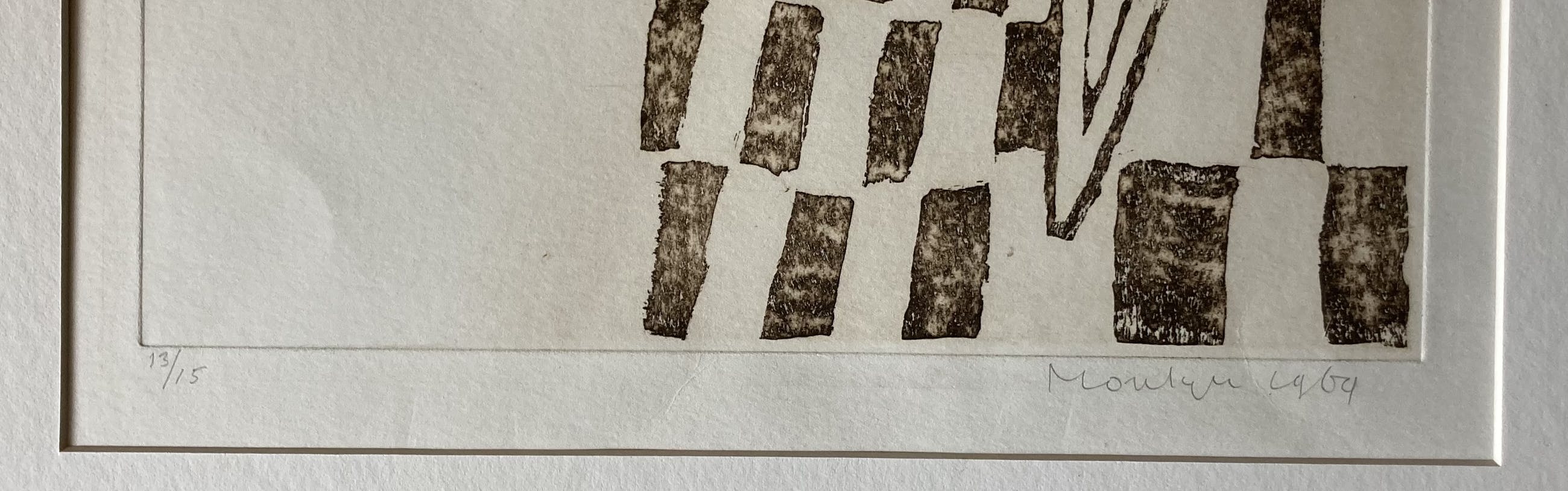 Mooie eigendruk ets van Montyn “Apollo” Glas mist van de lijst en er zit een klein vocht plekje links onder de p.p Werk zelf is helemaal gaaf