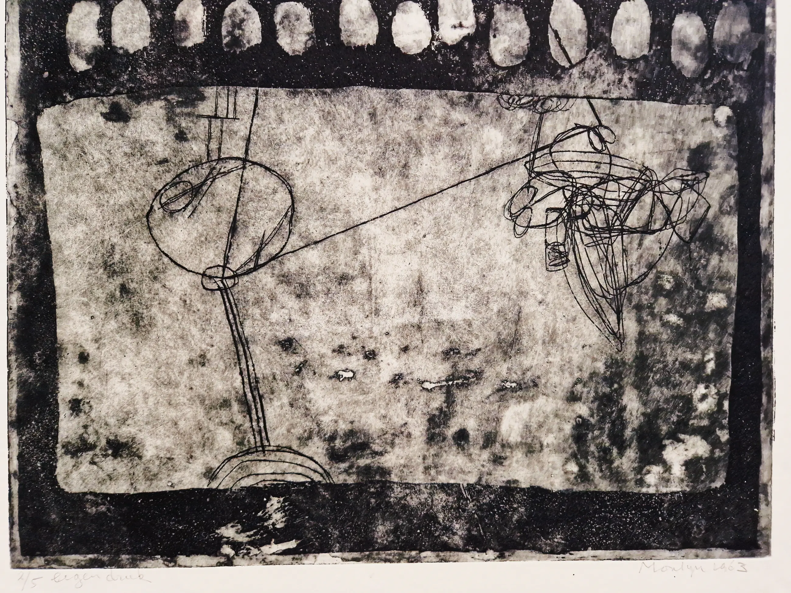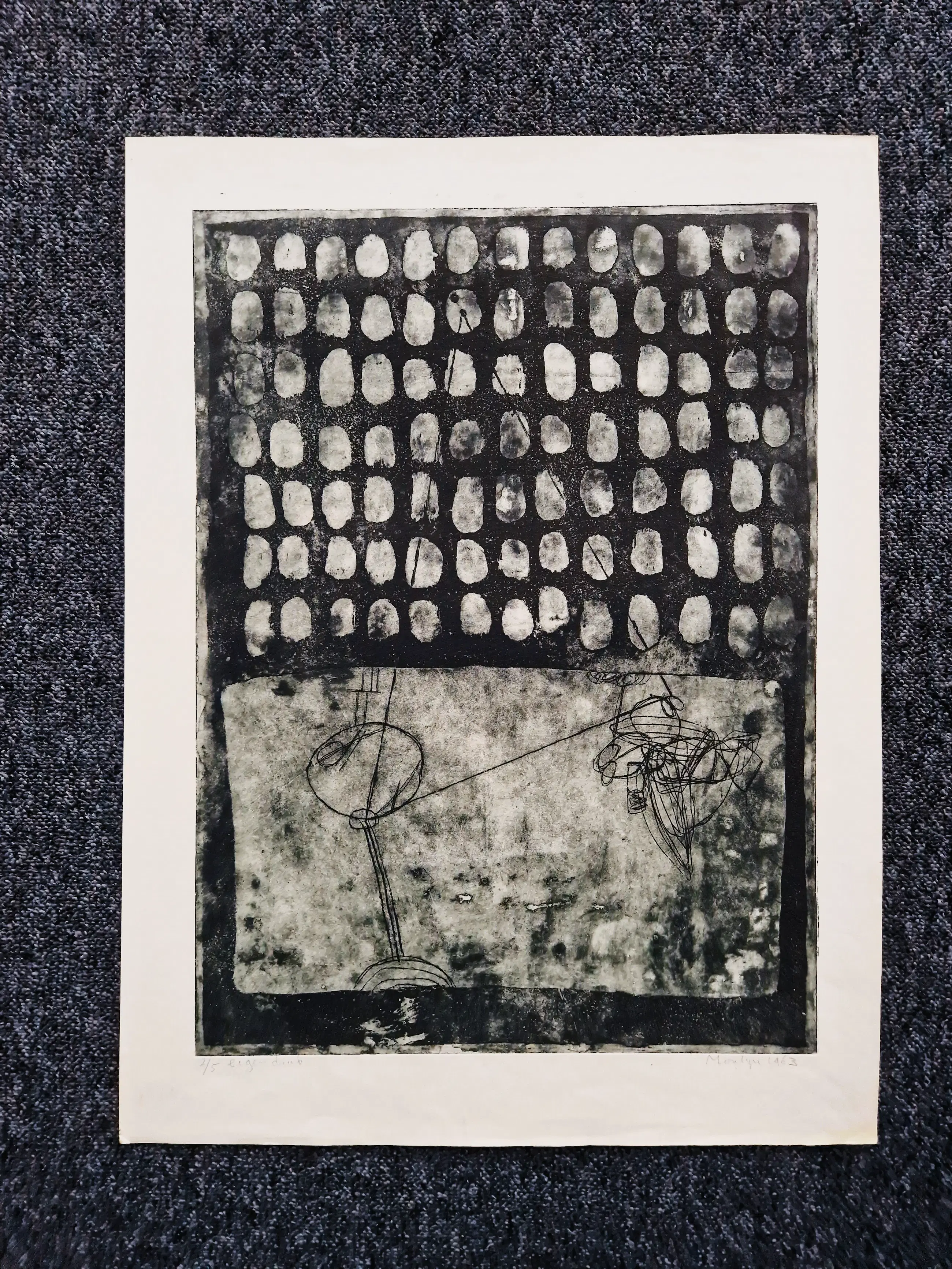- Grote, door jan Montyn in zeer kleine oplage van slechts 5 exemplaren in 1963 gemaakte zwart wit Lithografie getiteld "1 uit een aantal". Deze fraaie Litho was te zien in de expositie "Beeldhouwkunst Grafiek Schilderkunst Tentoonstelling Stichting nieuw beelden Stedelijk Museum Amsterdam" in 1964. Verkeert in zeer goede conditie en is met potlood gesigneerd, gedateerd en genummerd. Beeldmaat 40 x 55cm - Bladmaat 49 x 64.8cm. Losbladig - NIET ingelijst.