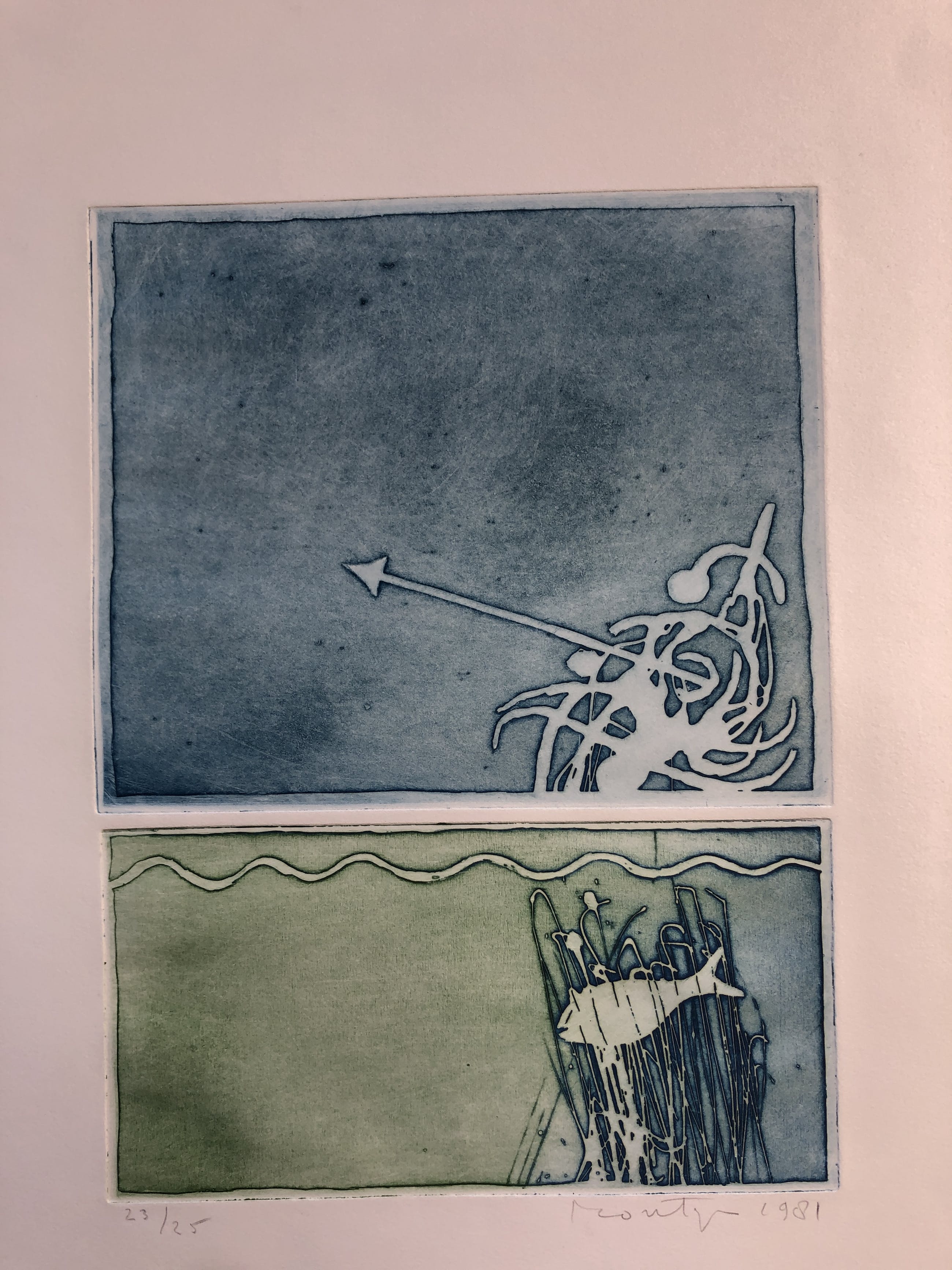 Fraaie ets van meester-etser Jan Montyn met toepassing van Montyn-blauw . U kunt het werk vooraf beoordelen in de schatkamer van galerie Rotor in Gorinchem.