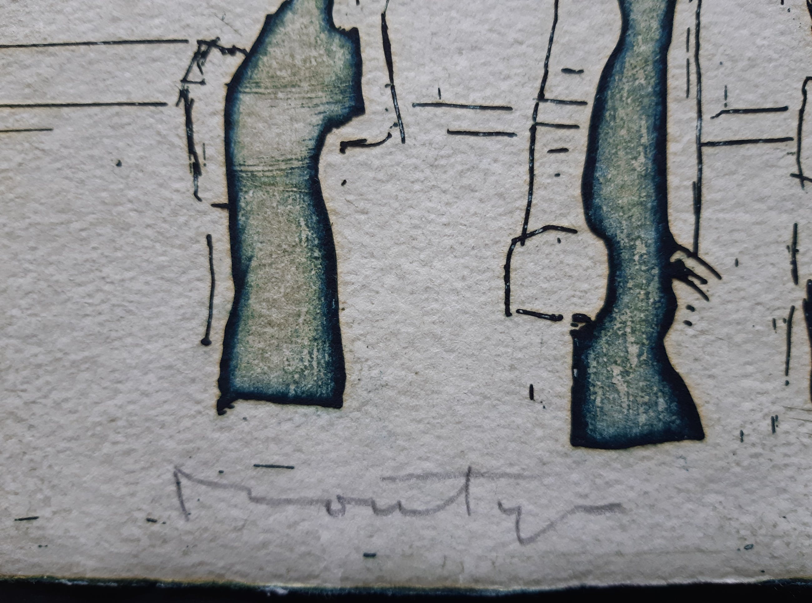 Kleurenets van Jan Montyn, zonder marge afgedrukt op geschept papier. Met potlood gesigneerd, gedateerd en genummerd. De titel staat, zoals gebruikelijk bij Montyn, achterop. Daarnaast de vermelding november. Het werk is is uitstekende staat.