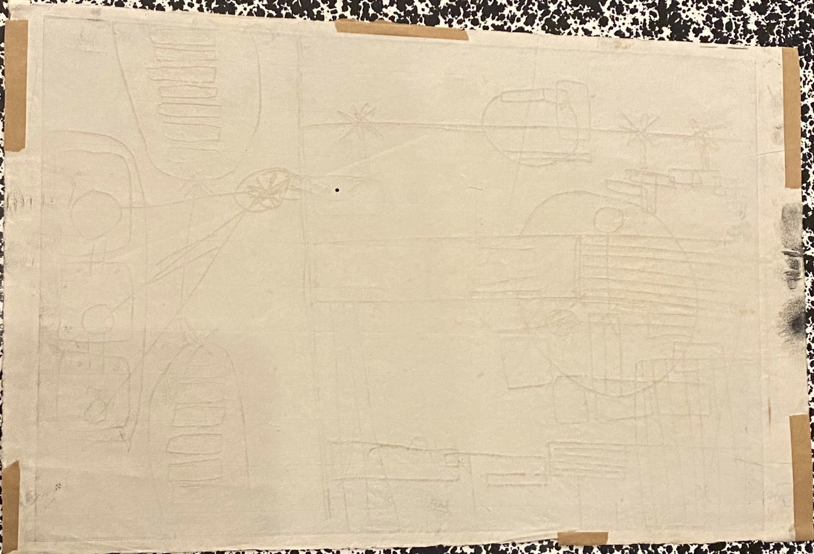 Vroeg werk in twee kleuren van Jan Montyn. Oplage 2/7 eigen druk. Op de ets staat geen titel geschreven, maar het is "Cry for existance" (opgezocht op janmontyncollection.com) De ets is ingelijst geweest, aan de achterzijde nog stukjes papieren tape. Smalle onder en bovenrand, in onderrand klein scheurtje. Wel erg fraai, zal ingelijst prachtig staan.