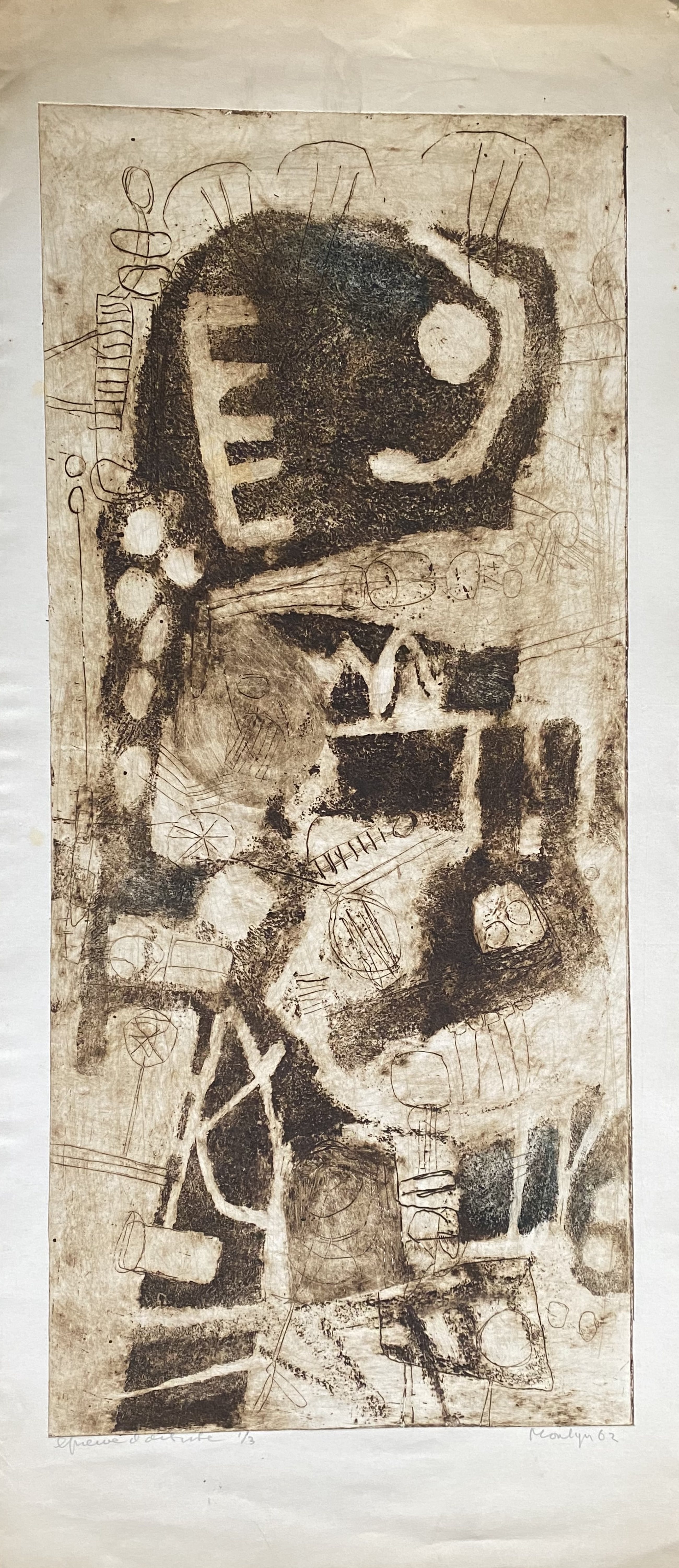 Mooie ets van Jan Montyn uit nalatenschap verkregen. Oplage 1/3 epreuve d'artiste 1962. Getiteld: deel van het land De ets is in goede staat en gedrukt op dik papier. Op de bovenrand ouderdomsverkleuring, maar niet op ets. Interessant werk voor een liefhebber.