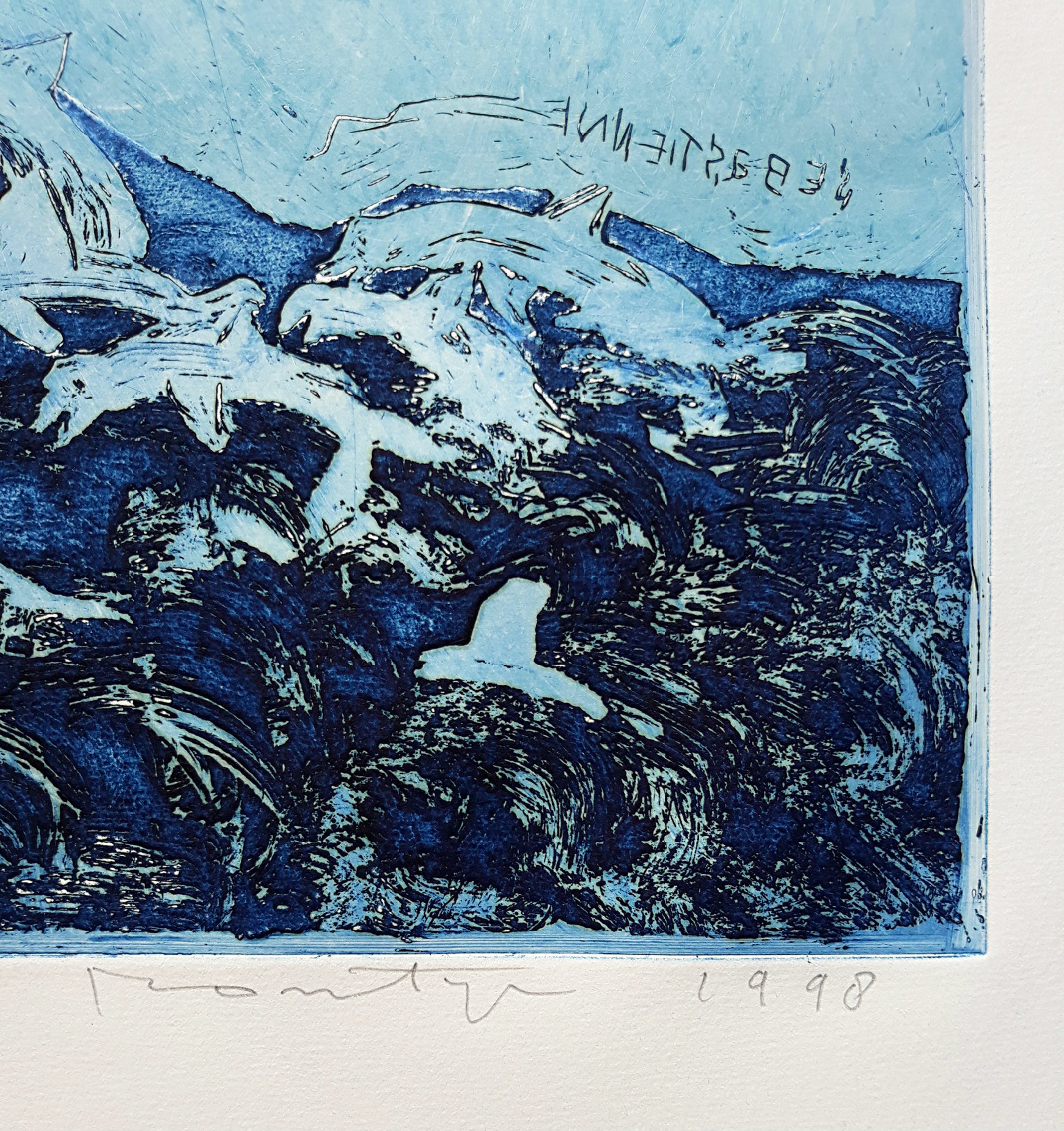 Karakteristiek werk van Jan Montyn. Aquatint ets op Hahnemühle papier, met potlood gesigneerd, gedateerd (1998) en genummerd (15/30). In uitstekende conditie.