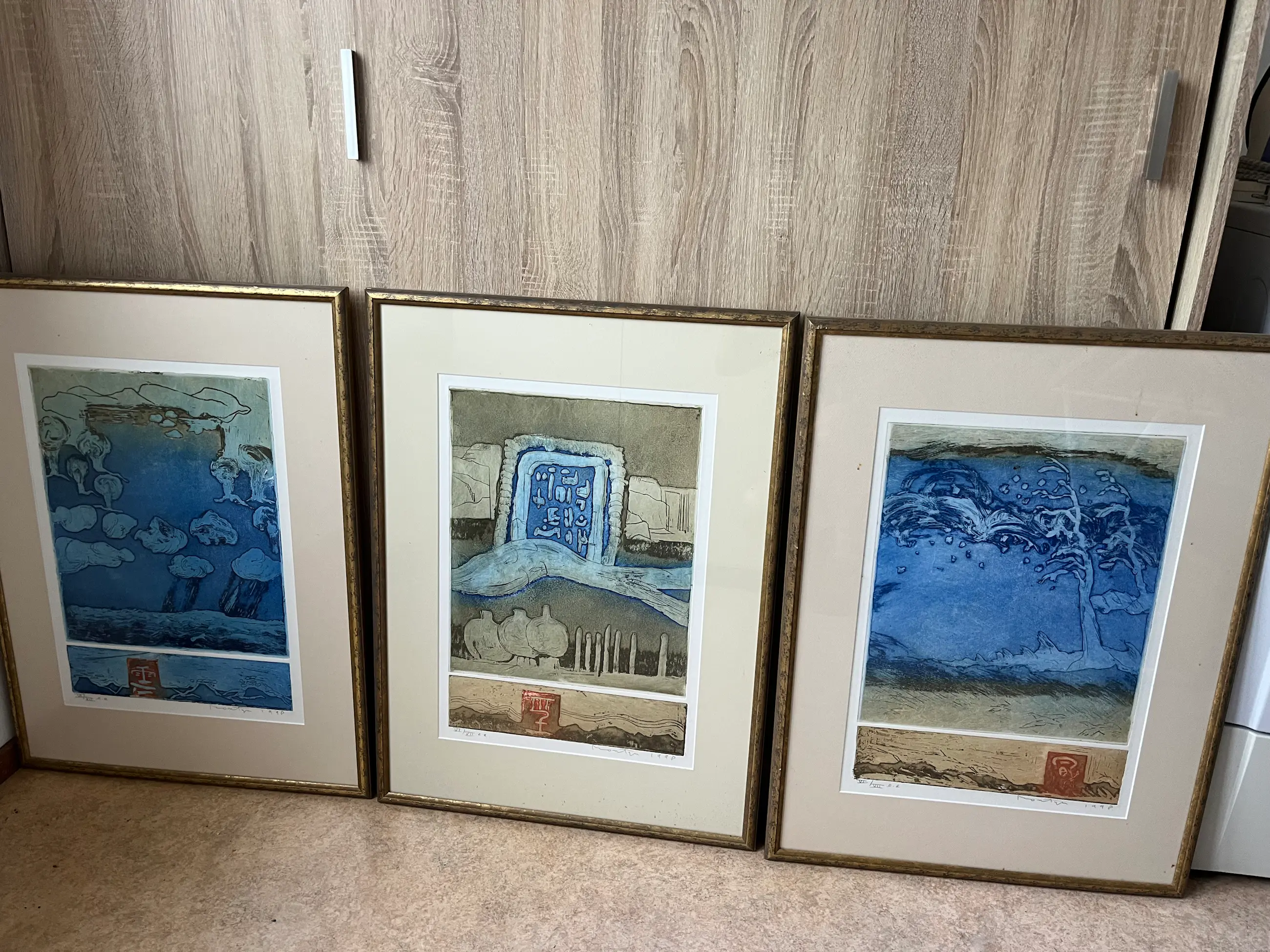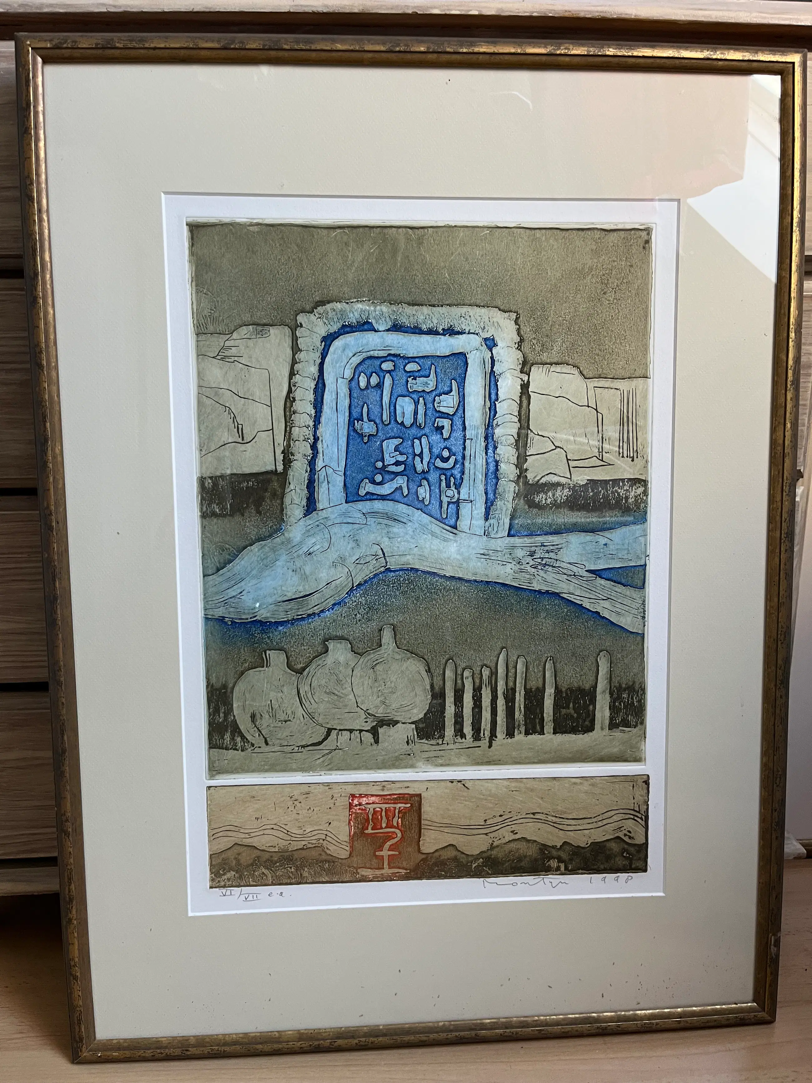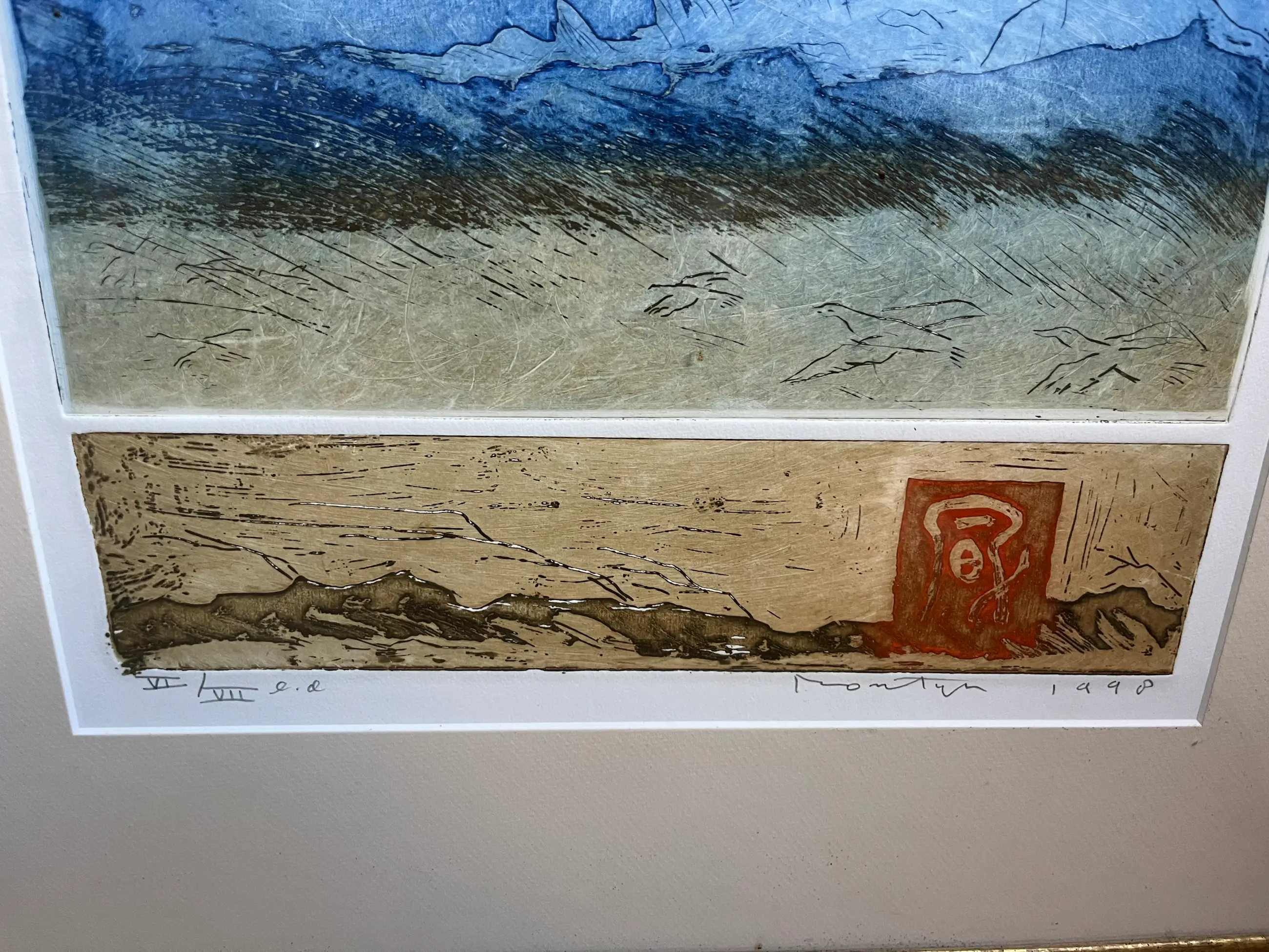 Prachtig drieluik uit 1998 van Jan Montijn, mooi professioneel ingelijst, goudkleurige lijst, in zeer goede staat.