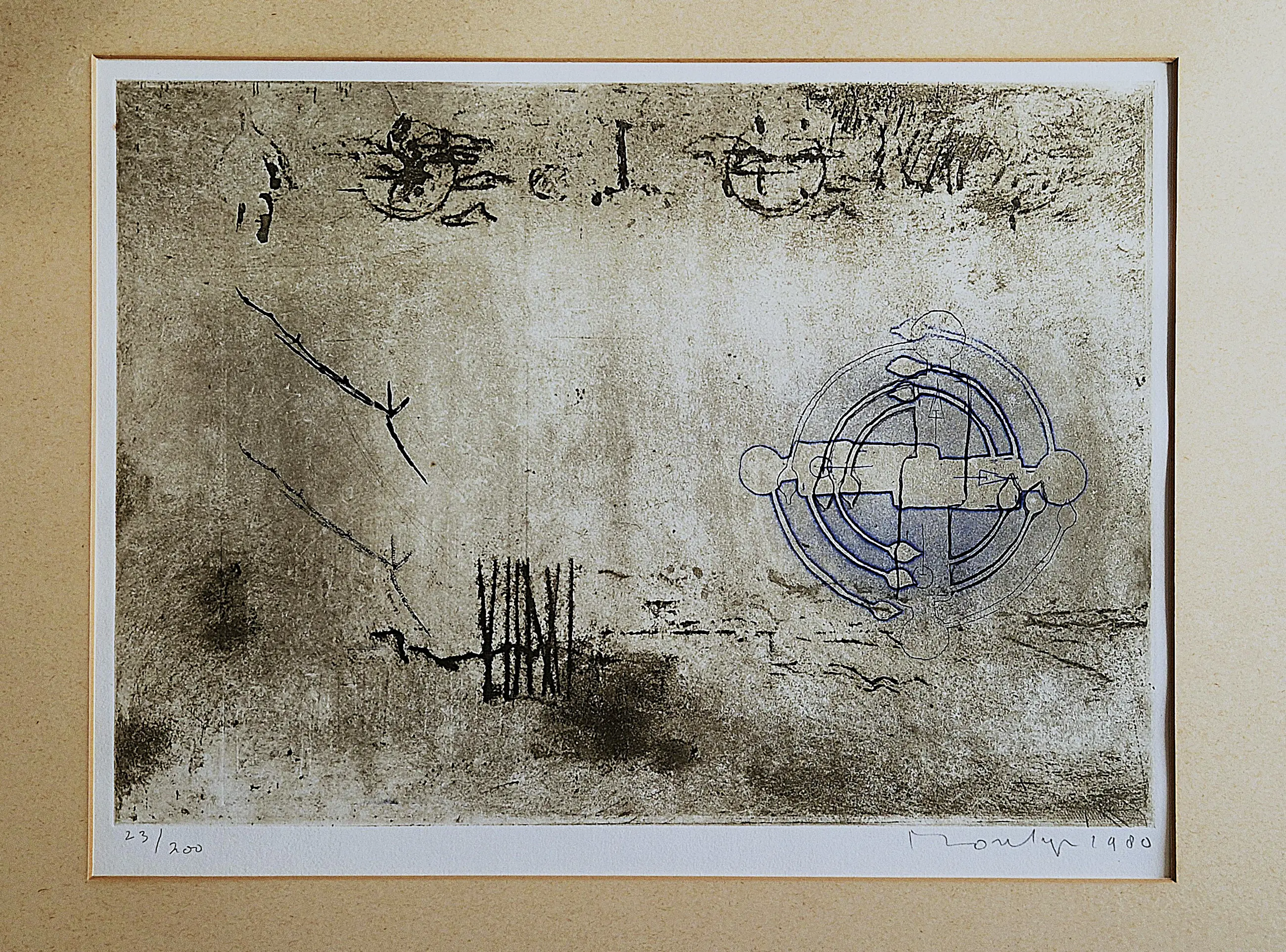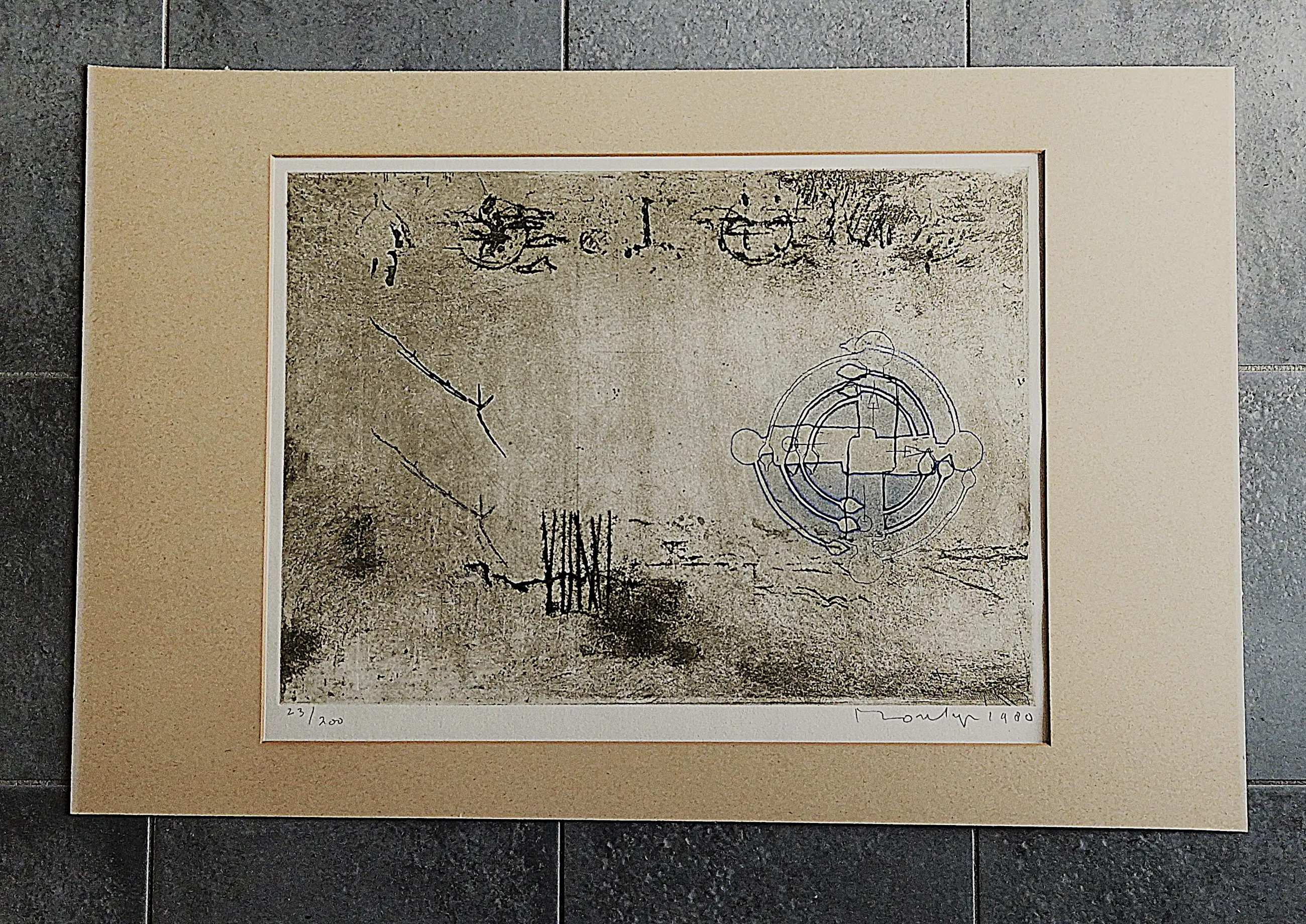 - Prachtig, verstild werk van Jan Montyn uit 1980. De “meditation garden” van de titel refereert aan een meditatietuin in de heuvels van Kyoto, Japan. Aquatint ets op papier, met potlood gesigneerd, gedateerd en genummerd (23/200). Dit exemplaar zit voorin de serie is daarom in erg goede, scherpe conditie.