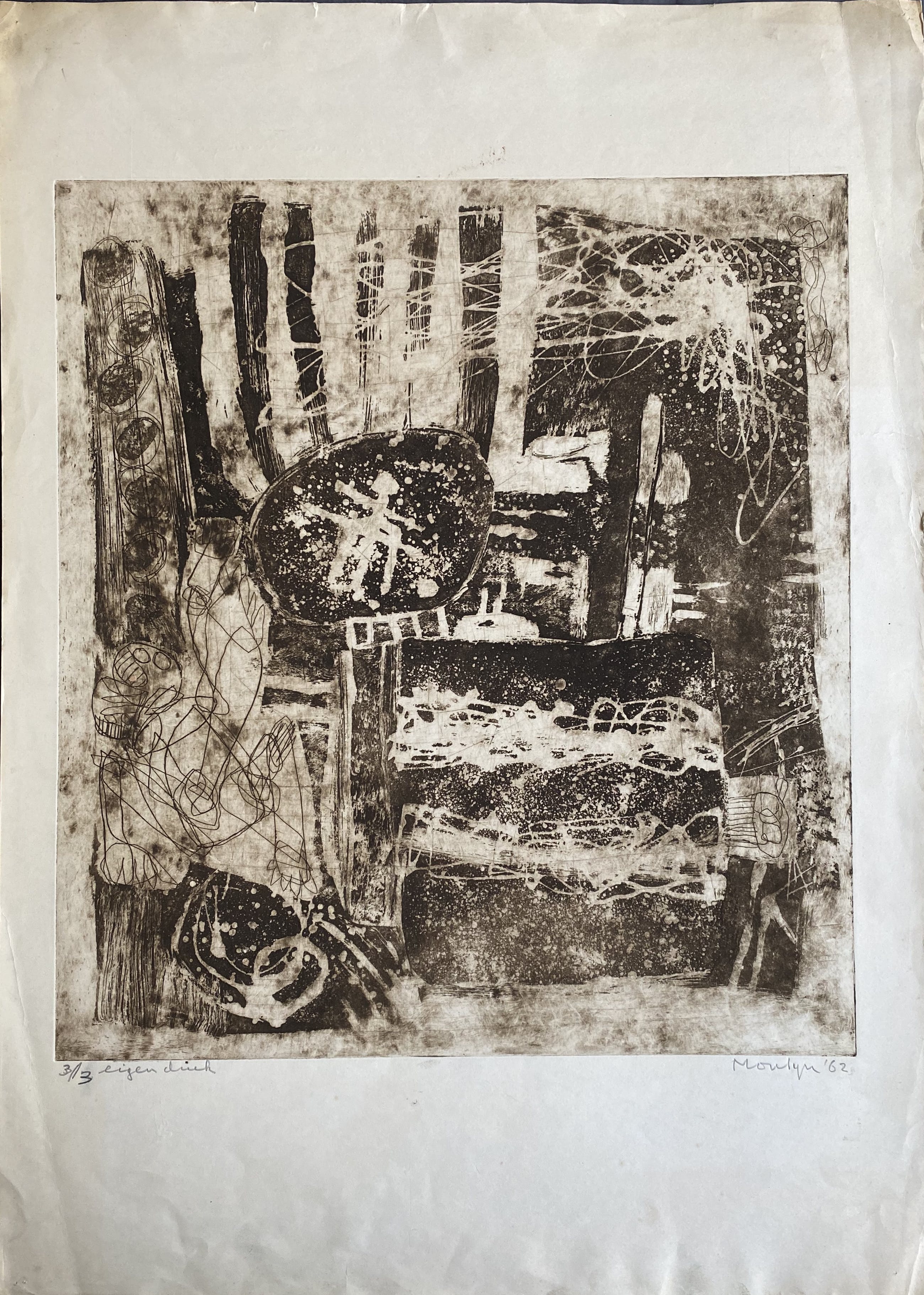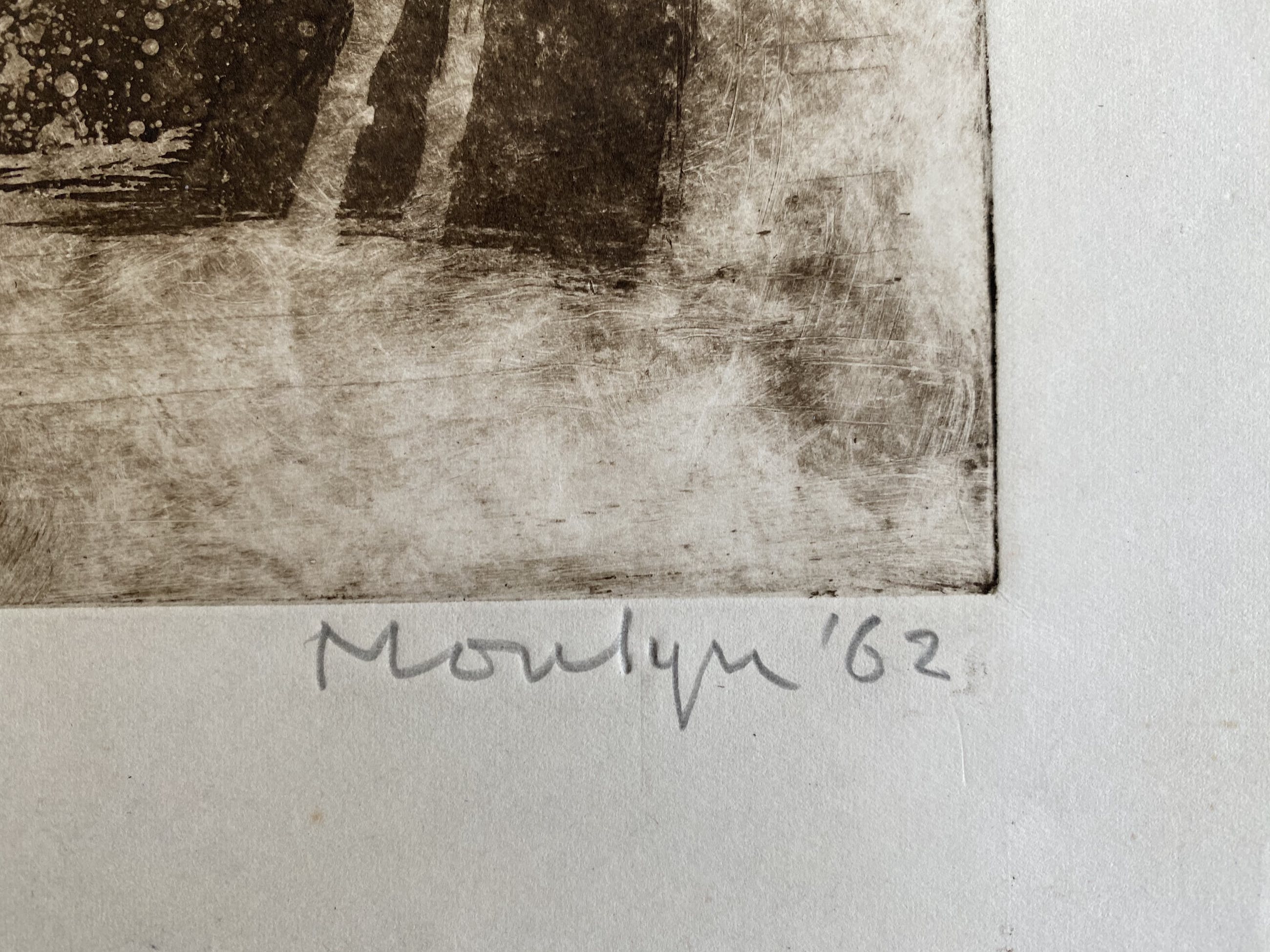 Fraaie ets, vroeg werk van Jan Montyn. Oplage 3/3 eigen druk 1962 De ets is gedrukt op dik papier. Wat ouderdomsvlekken op de rand, maar deze vallen weg in een passe partout. Groot exemplaar. Voor de liefhebber.