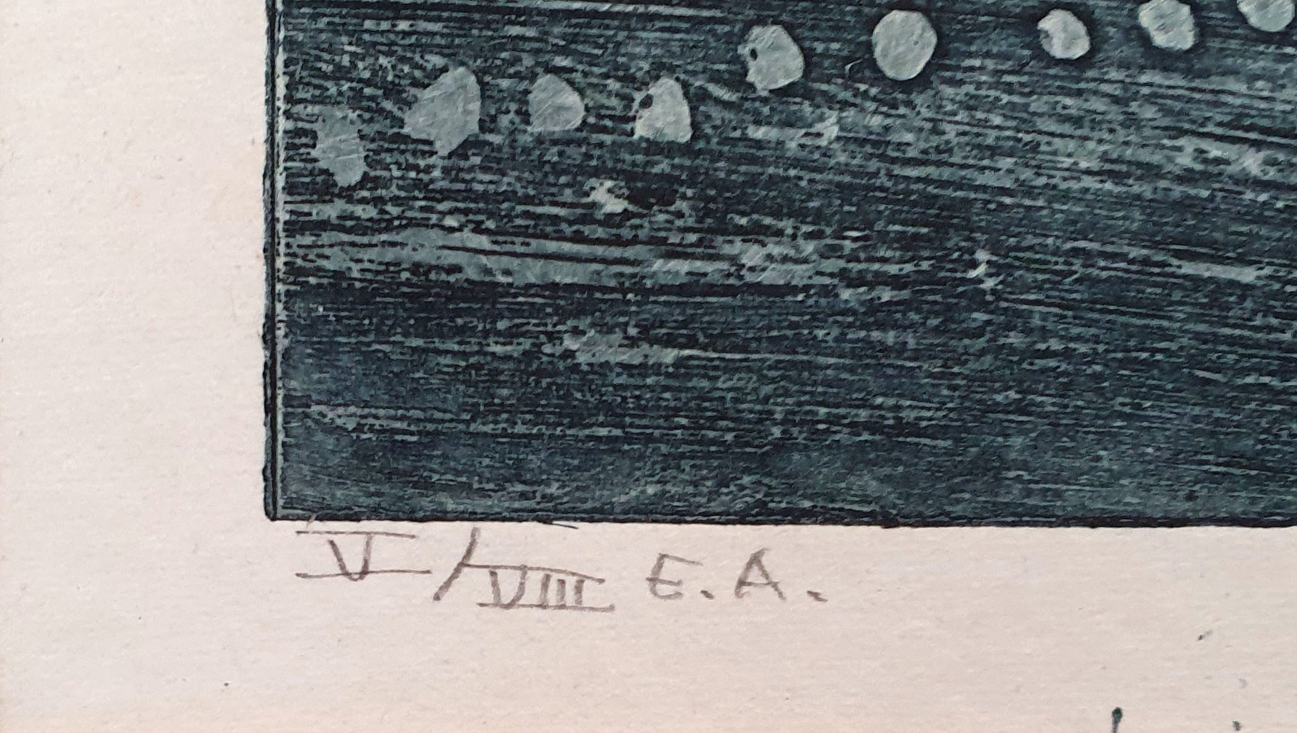 Kunstenaar: Jan Montyn Techniek: Ets Oplage: E.A 5/8 Gesigneerd: Rechtsonder Ingelijst: In passe partout Afmeting voorstelling (HxB): 11 x 15 cm Afmeting blad (HxB): 36 x 40 cm Conditie Werk: Zeer goed