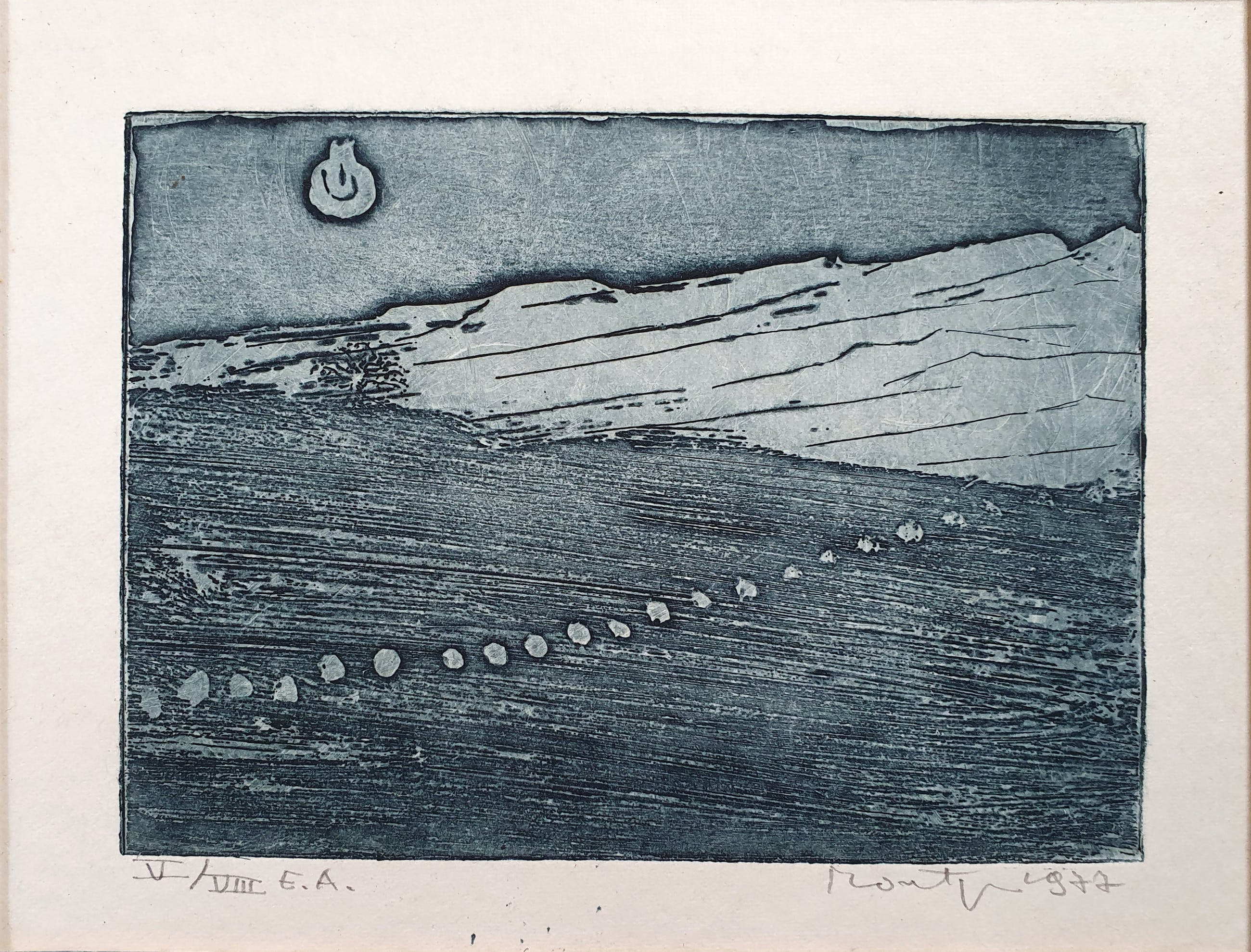 Ets uit 1977 van Jan Montyn. Het werk is rechtsonder met de hand gesigneerd door de kunstenaar.