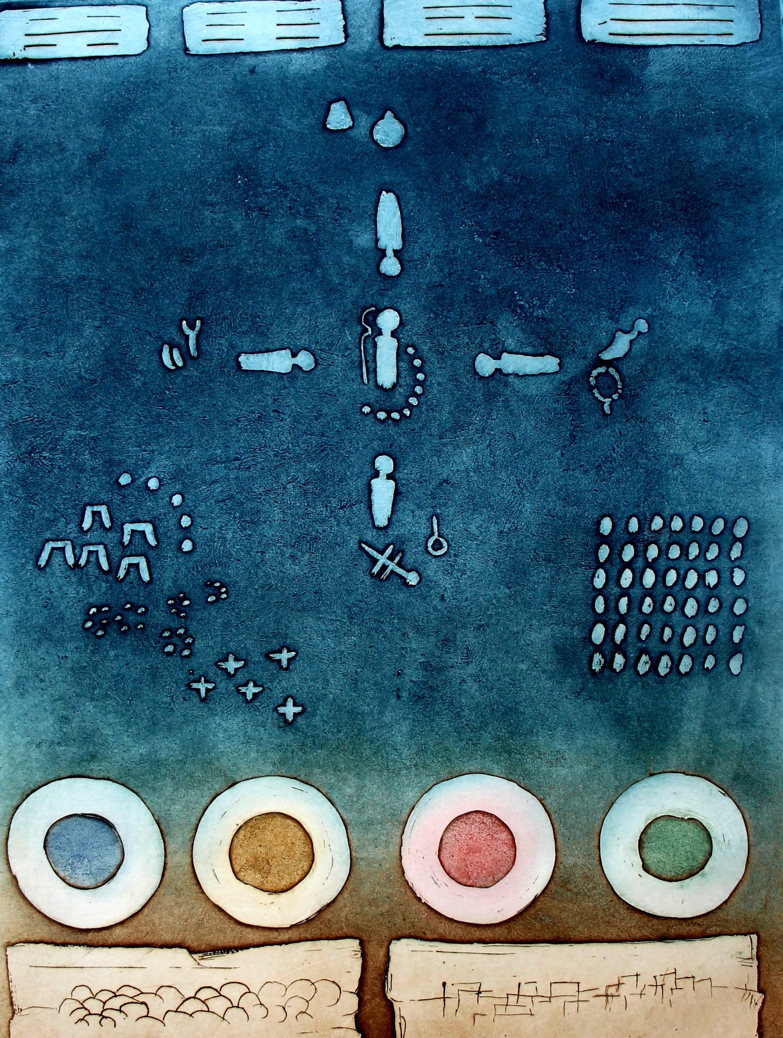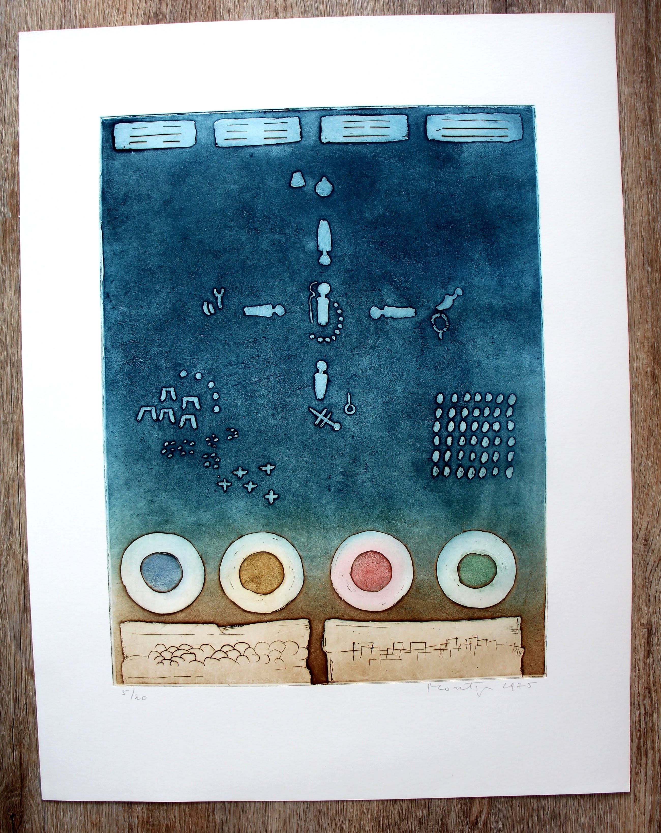 Ets van Jan Montyn uit 1975. Titel: Sixième jour - Non formation de penseé ( Chönyid Bardo). Afmeting voorstelling: H 47 x b 35 cm. De authenticiteit van het aangeboden werk wordt volledig gegarandeerd. Een certificaat van echtheid kan, op aanvraag, worden gemaild.