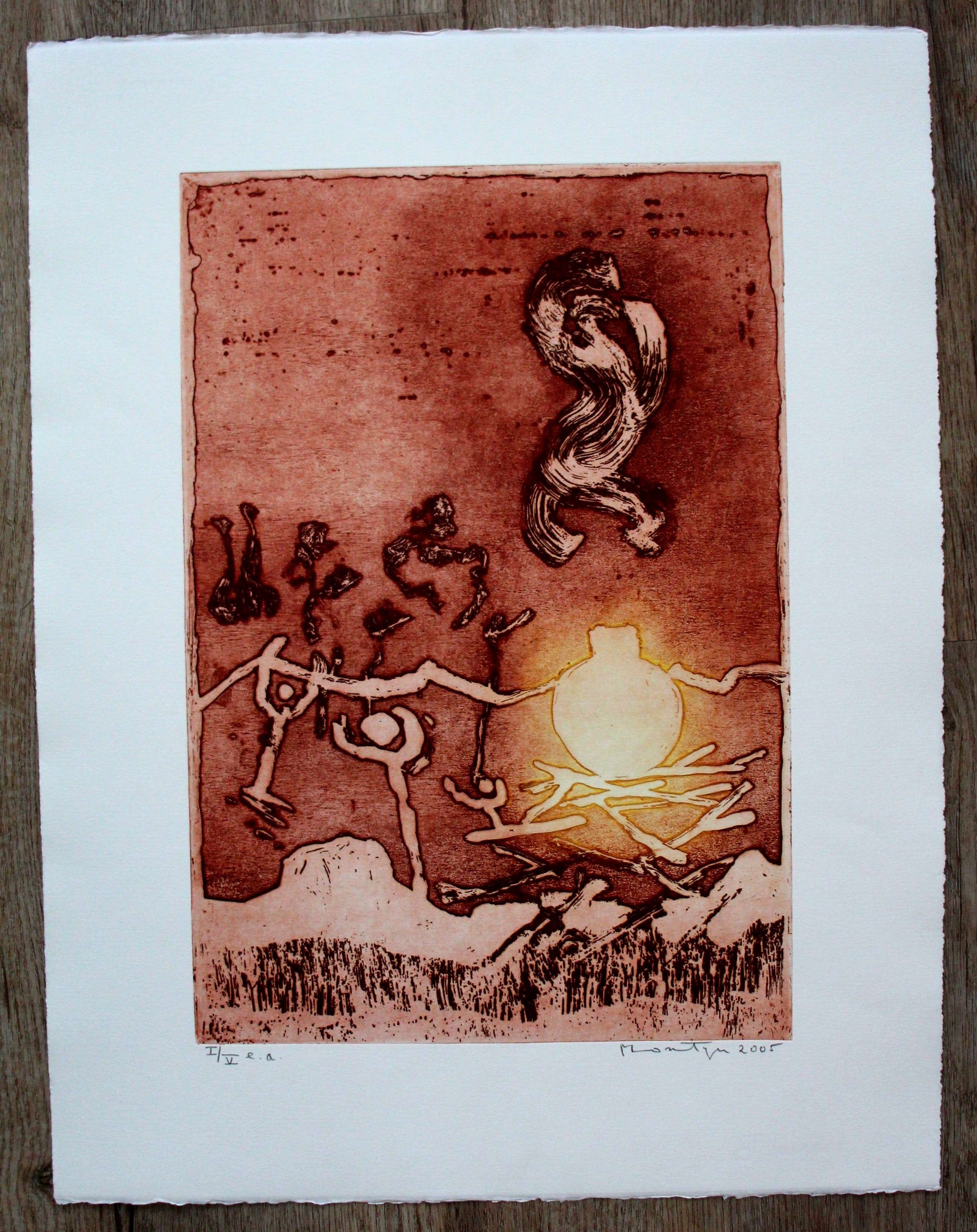 Mooie ets/aquatint van Jan Montyn uit 2005. Titel: Trust. Deze ets komt uit een serie van 3 etsen: Love - Trust en Respect. Deze etsen worden alle drie aangeboden in de special. Afmetingen blad: H65.5 x b50.5cm. Afmetingen voorstelling: H49 x b33cm. Gesigneerd rechts onder met potlood door de kunstenaar. De authenticiteit van het werk wordt volledig gegarandeerd. Een certificaat van echtheid kan , op aanvraag, worden gemaild.