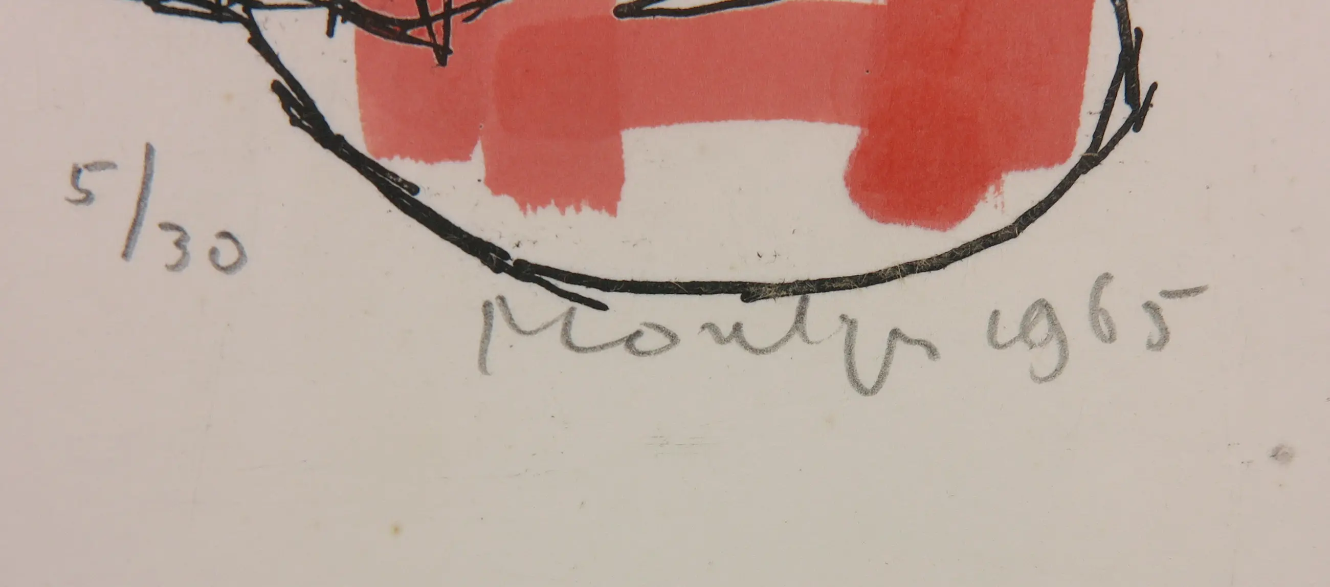 Jan Montyn ook wel Jan Montijn was een Nederlandse graficus, dichter, tekenaar, en schilder. Zijn controversiële doch interessante verleden inspireerde zijn kunst . Montyn is te vinden in hoogwaardige collecties zoals het MoMA en het stedelijk museum in Amsterdam. Deze ets heeft een bijzondere zwart/gouden lijst. Handgesigneerd.
