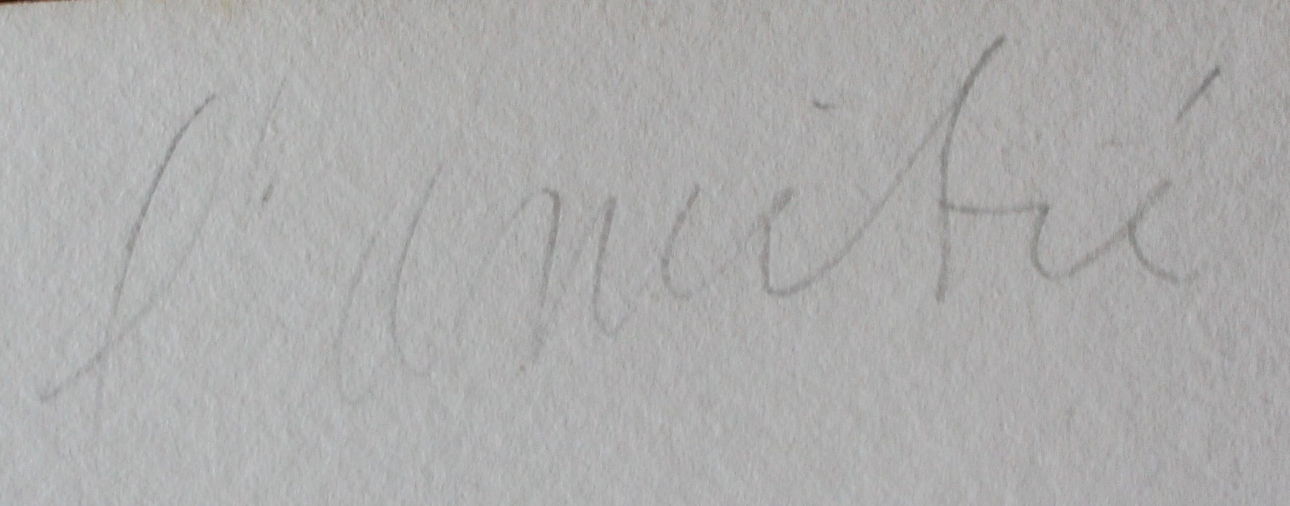Op de randen zit wat verkleuring. Goed ingelijst, valt dit in de lijst/onder de passepartout.