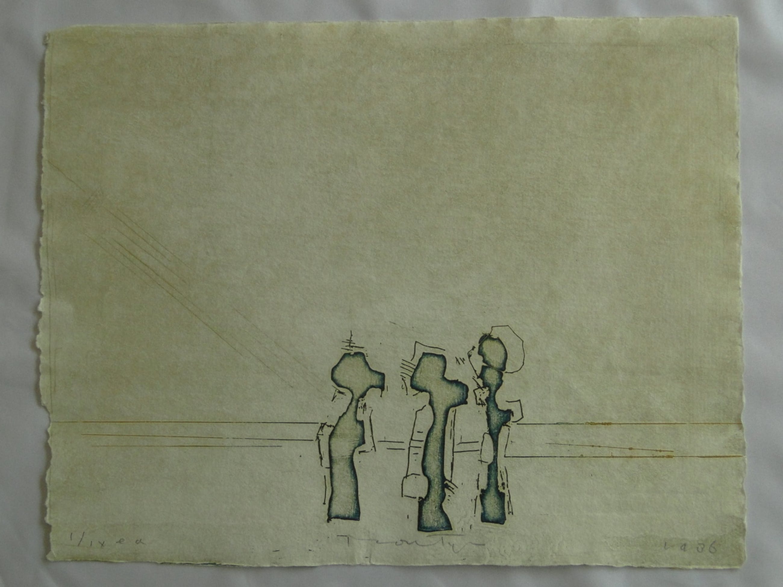 Randloze Ets/Aquatint gesigneerd midden-onder "Montyn" afmeting 25x32