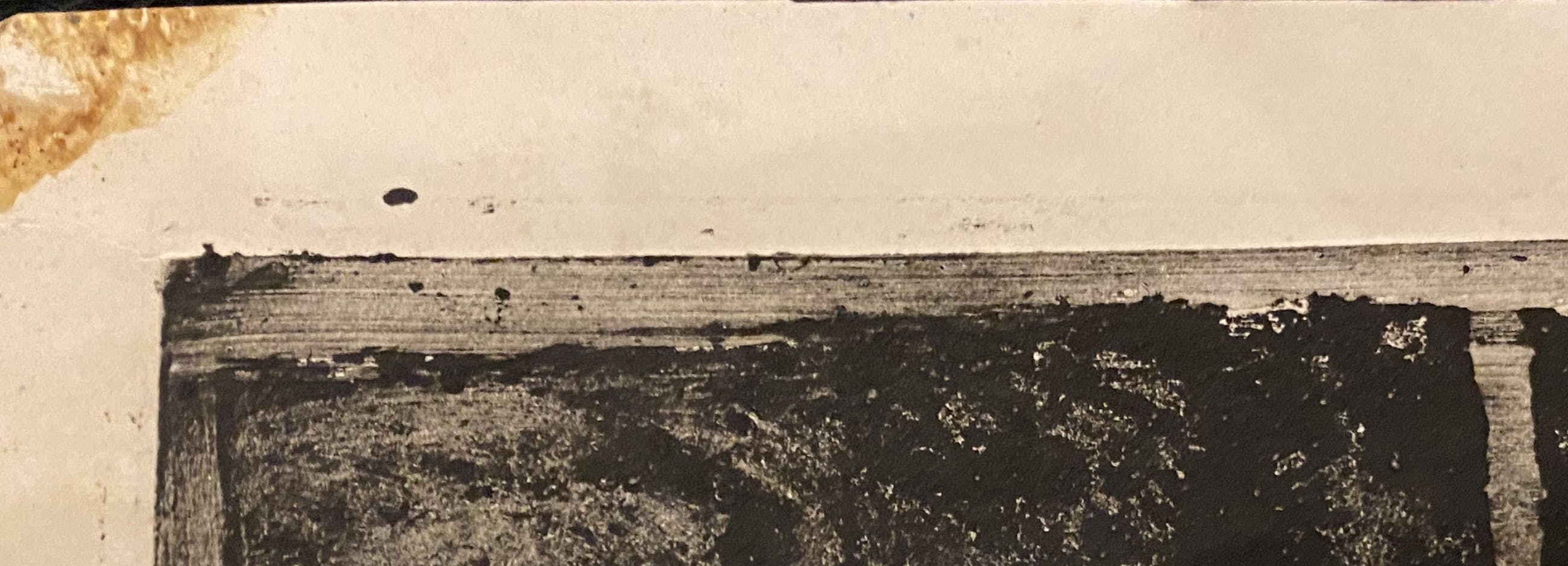 Ets is gedrukt op dik papier en in goede staat gezien de leeftijd. Linksboven een (lijm)vlekje op de rand, maar deze valt weg in een passe-partout.