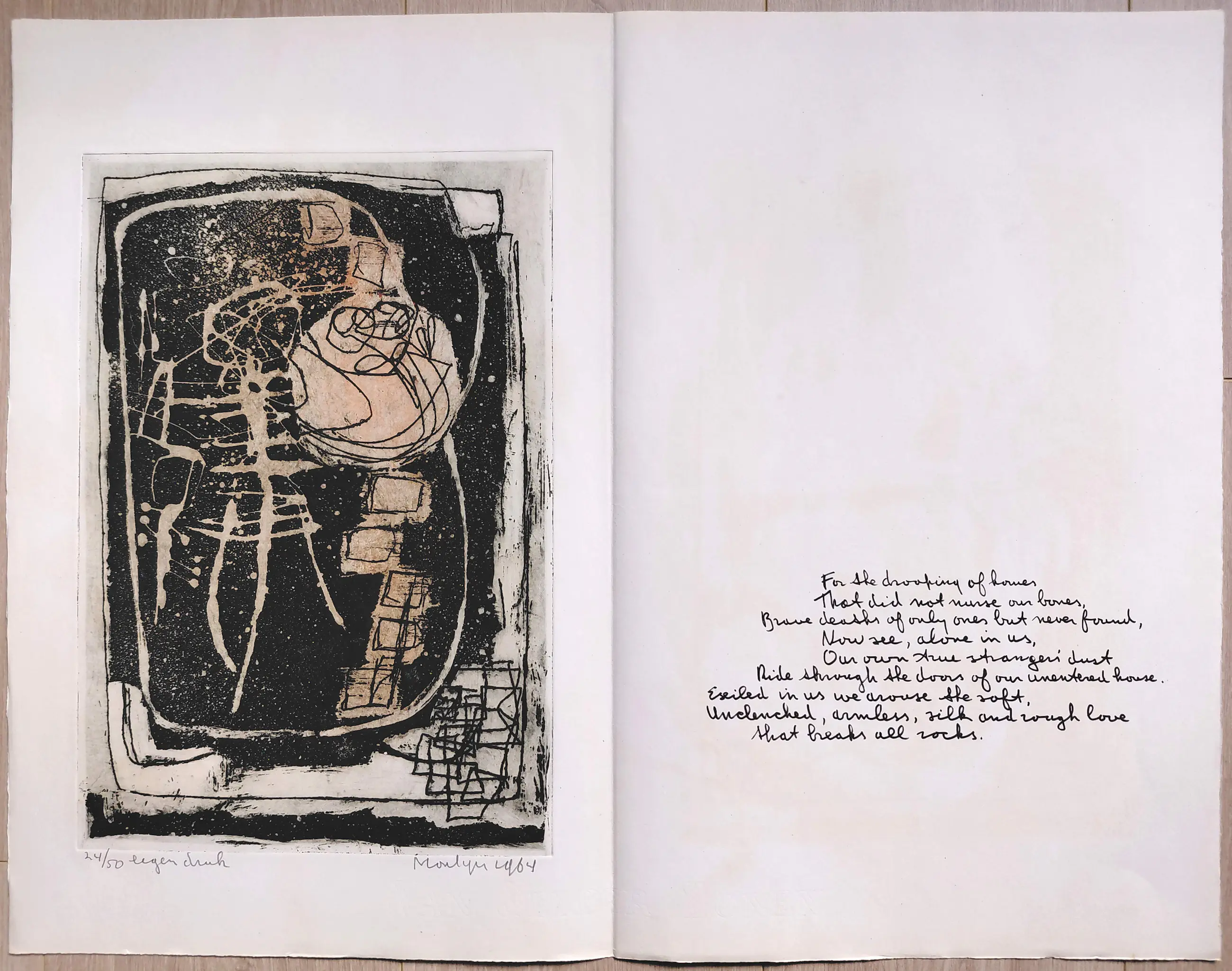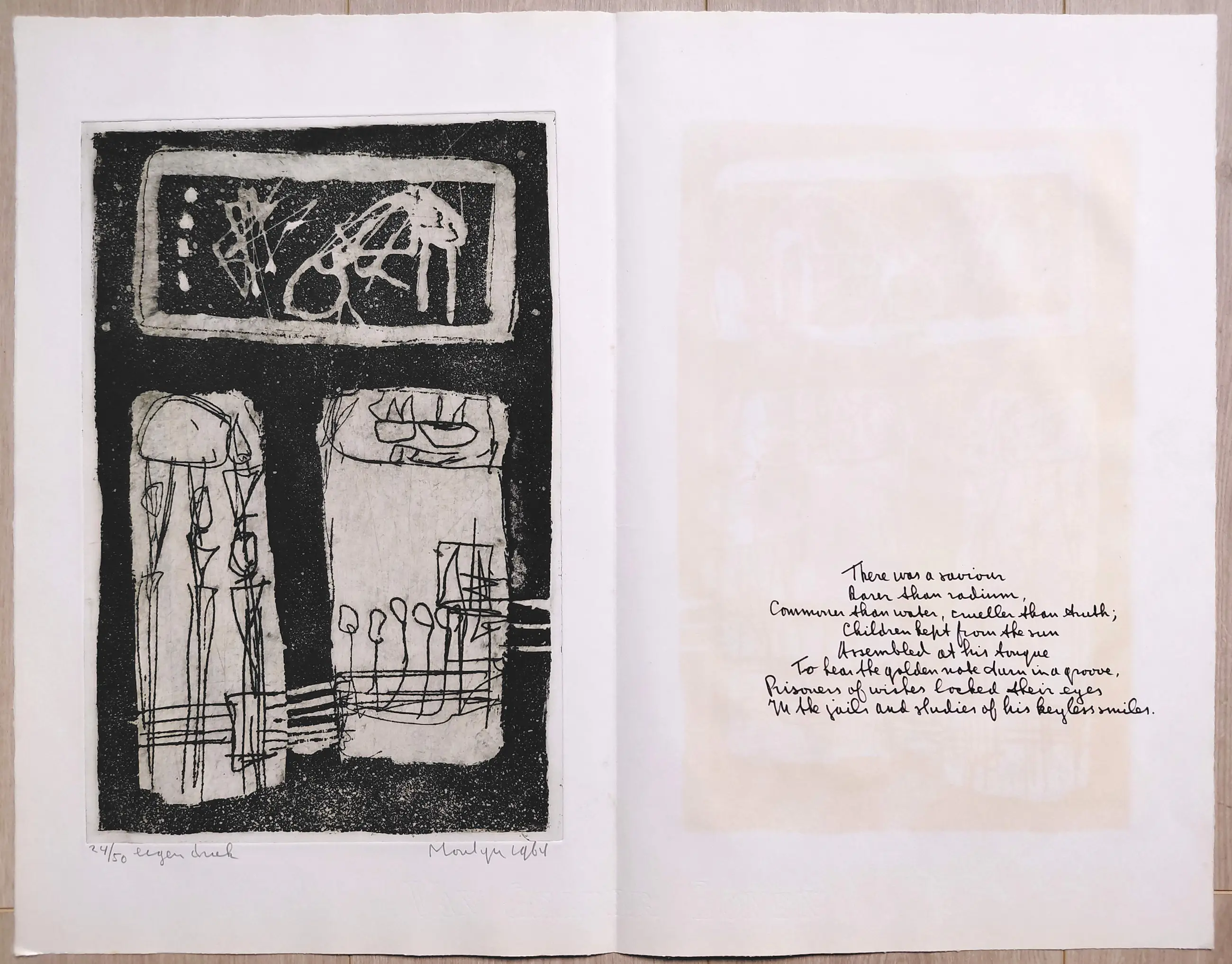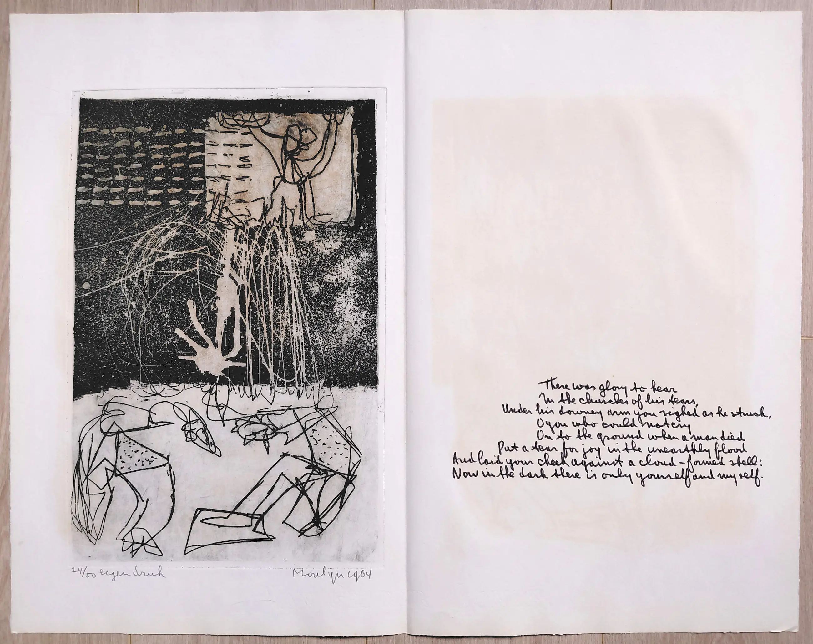 Complete uitgave met tien handgesigneerde etsen van Jan Montyn. Een monument van een uitgave, algemeen beschouwd als zijn magnum opus van de jaren 60. Tien aquatint etsen op Van Gelder & Zonen papier, iedere ets met potlood gesigneerd, gedateerd (1964) en genummerd (24/50) in originele, stevige portfolio. In zeer goede conditie, is meer dan 60 jaar lang in portfolio bewaard gebleven.