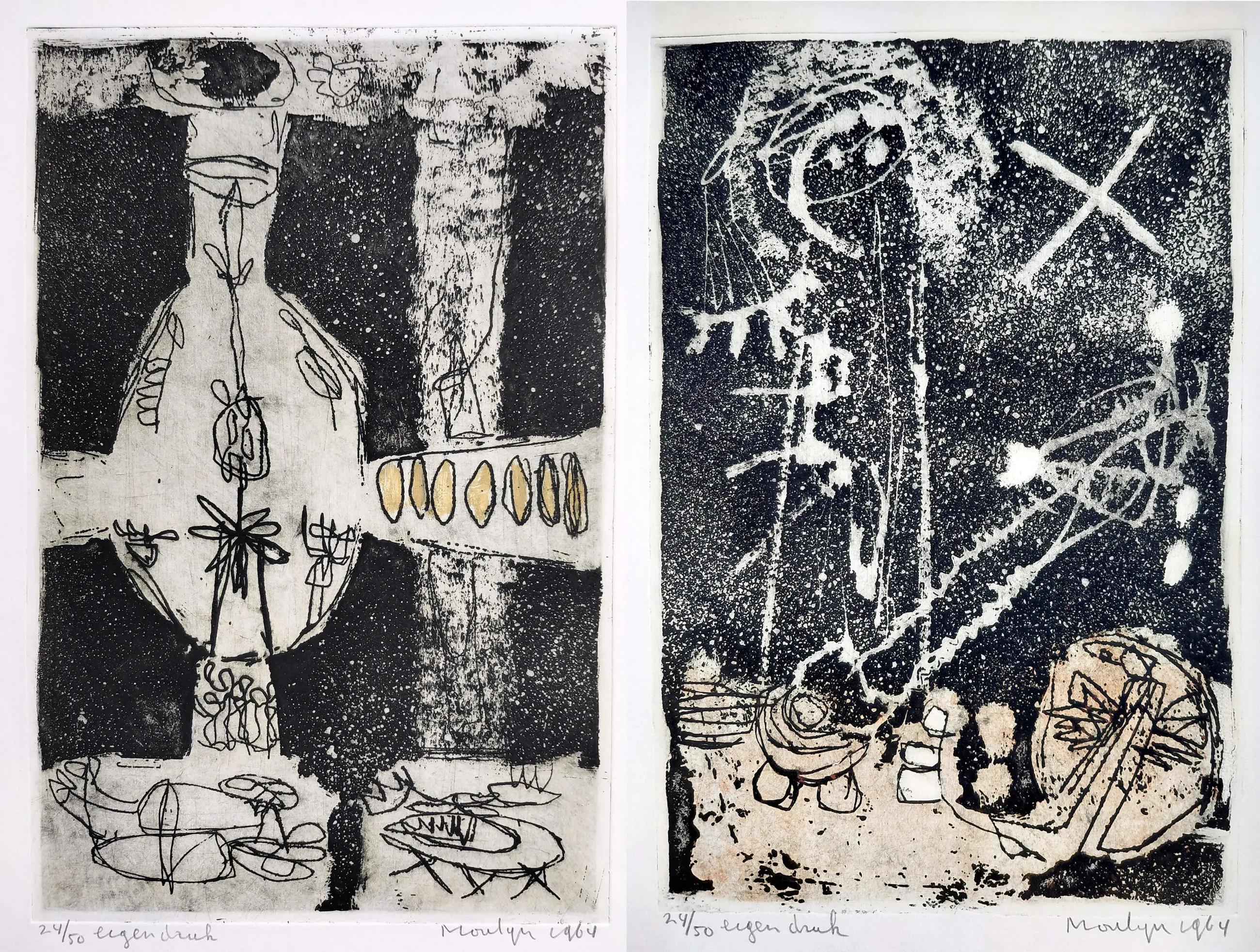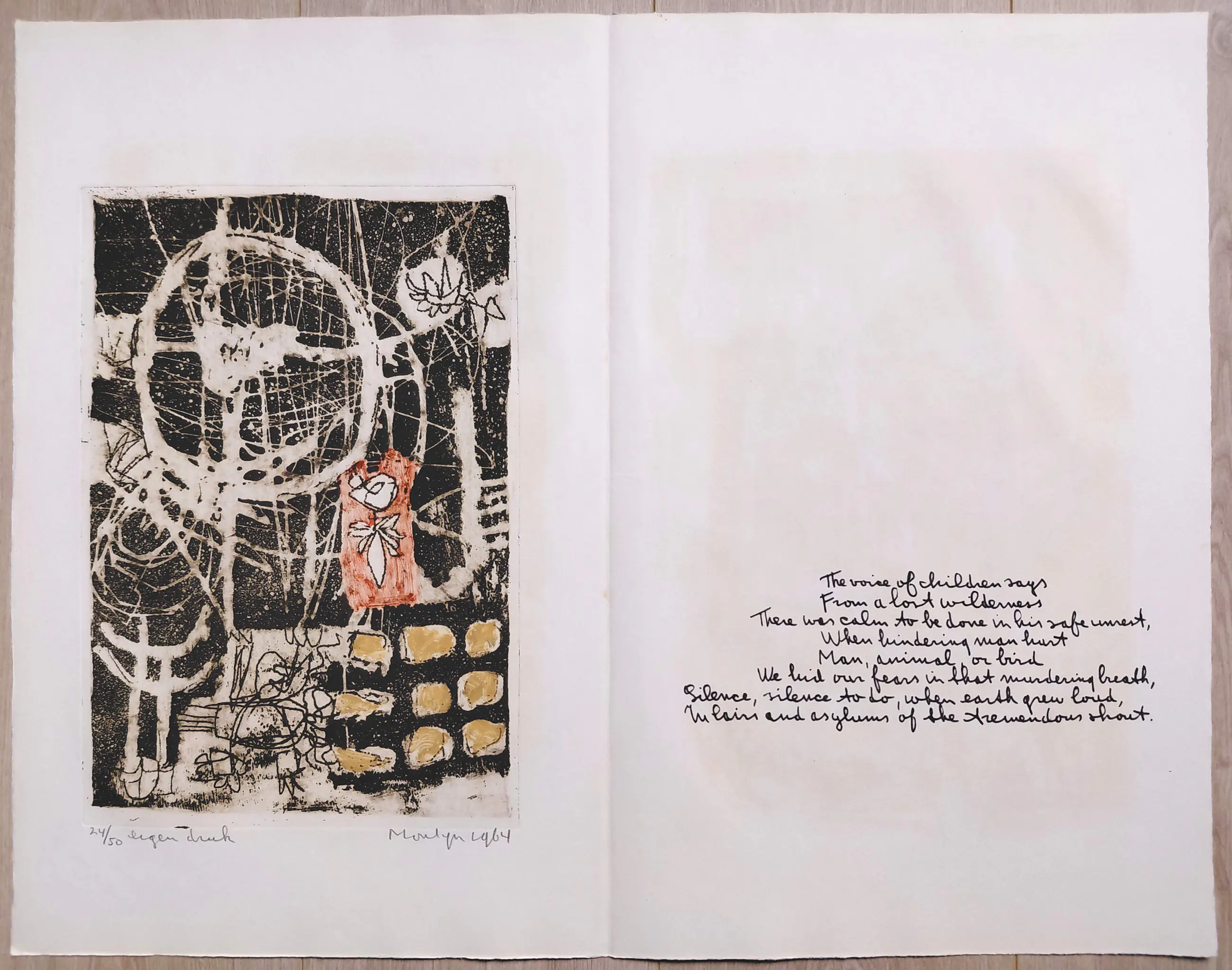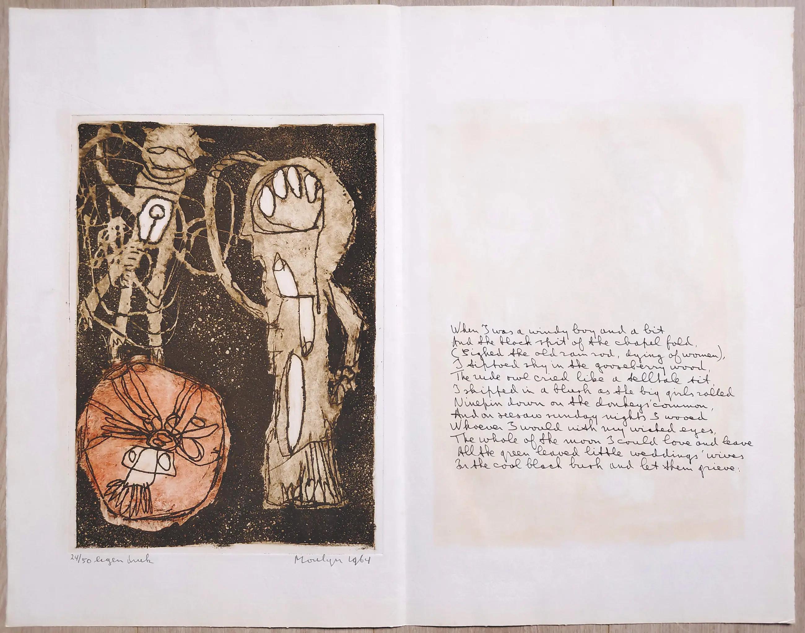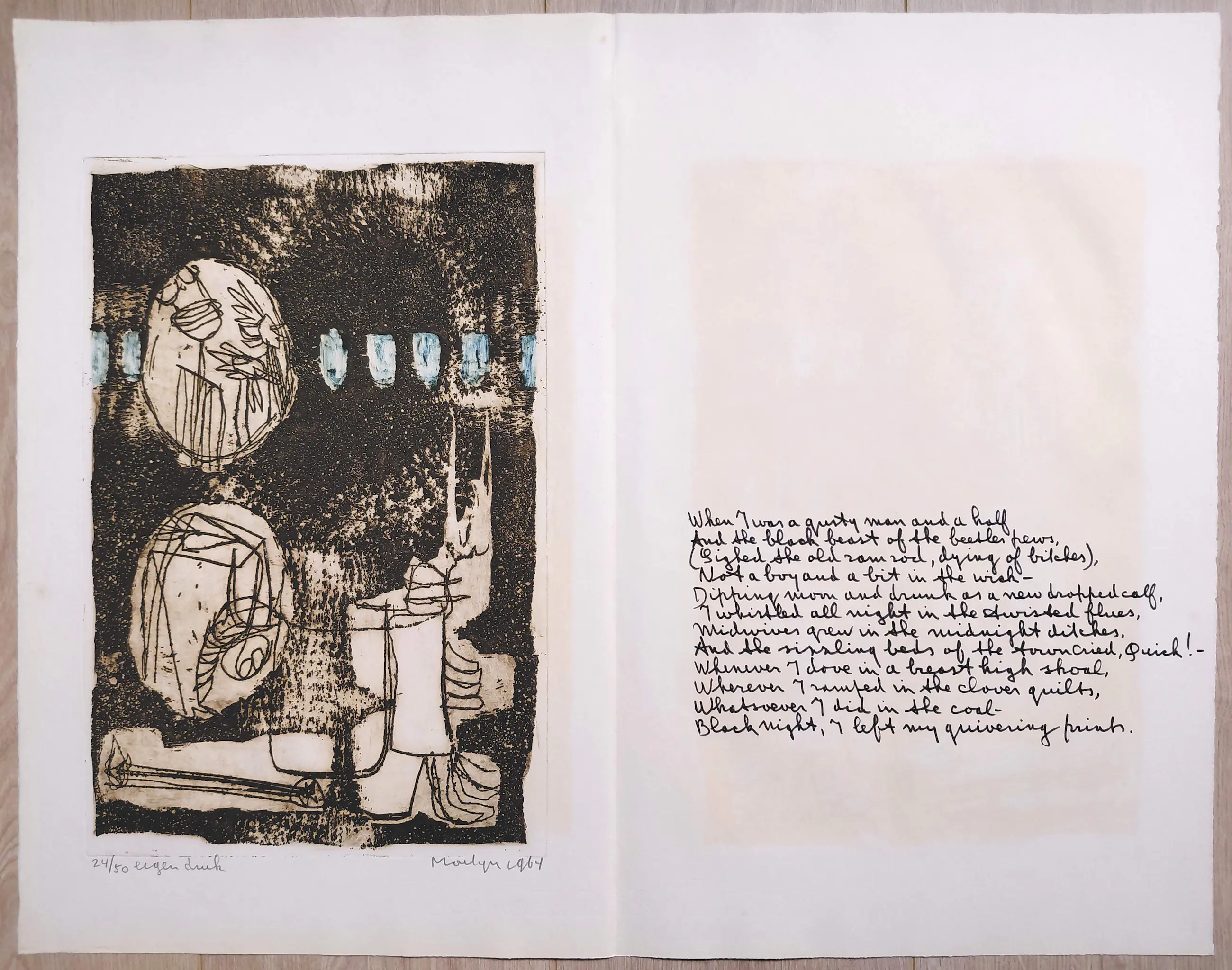 Complete uitgave met tien handgesigneerde etsen van Jan Montyn. Een monument van een uitgave, algemeen beschouwd als zijn magnum opus van de jaren 60. Tien aquatint etsen op Van Gelder & Zonen papier, iedere ets met potlood gesigneerd, gedateerd (1964) en genummerd (24/50) in originele, stevige portfolio. In zeer goede conditie, is meer dan 60 jaar lang in portfolio bewaard gebleven.