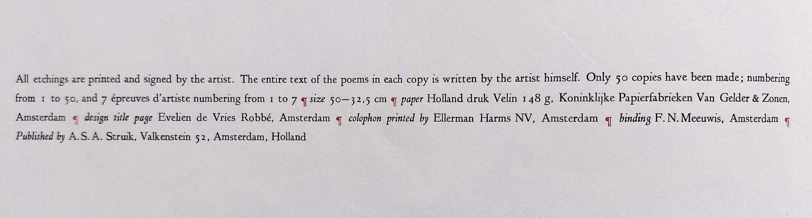 Afmetingen: 51cm x 34cm (portfolio), 61cm x 51cm (elk dubbelblad met ets en tekst)