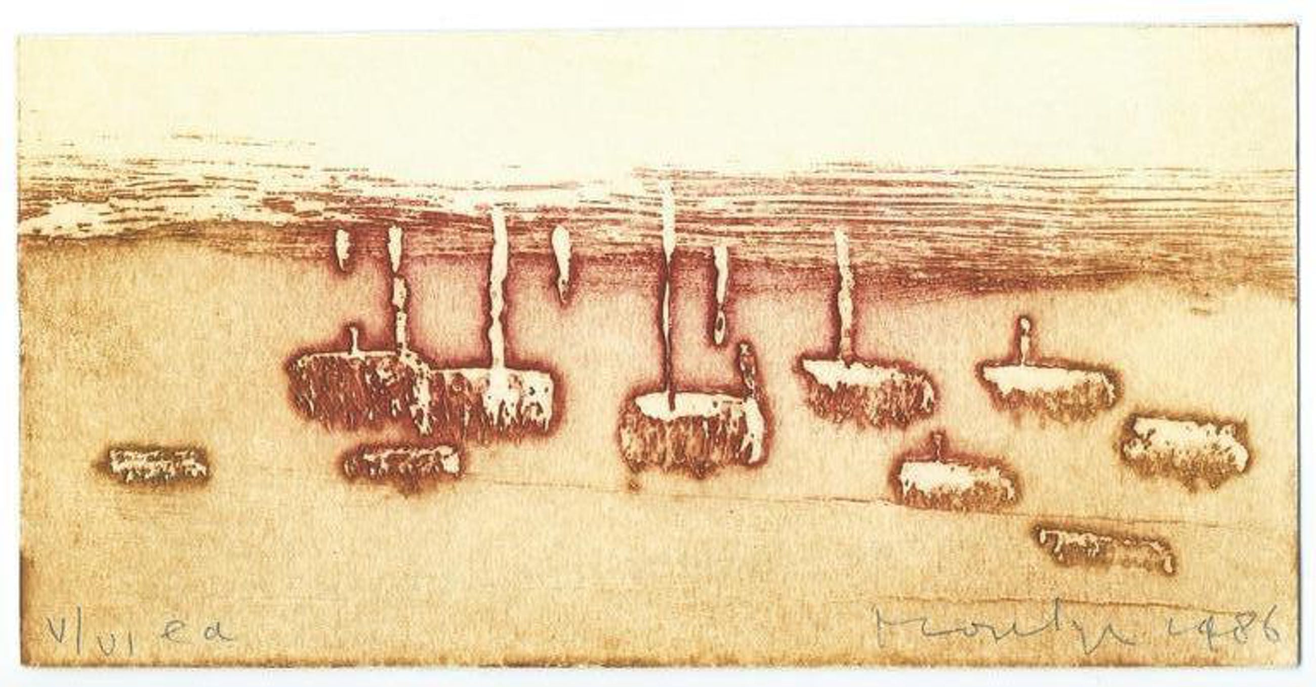 Gezien de tekst op de achterzijde heeft Jan deze ets in 1987gebruikt als nieuwjaarskaart.