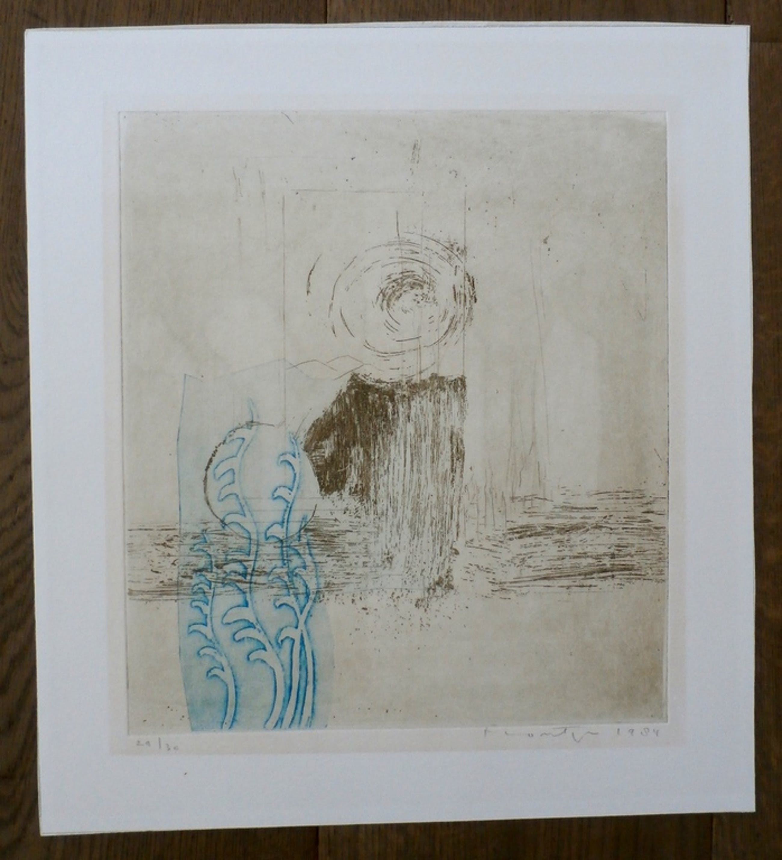 Ets van Jan Montyn uit 1984. Titel: Abad Santos. Nummer: 29/30. Afmetingen voorstelling: h33,5 x b29,5 cm. De authenciteit van het, aangeboden, werk wordt voor 100% gegarandeerd.Een certificaat van echtheid kan, op aanvraag, worden meegeleverd. Jan Montyn maakte deze zeefdrukken in het meest zuidelijk puntje van de Filipijnen: Davao del Sur.