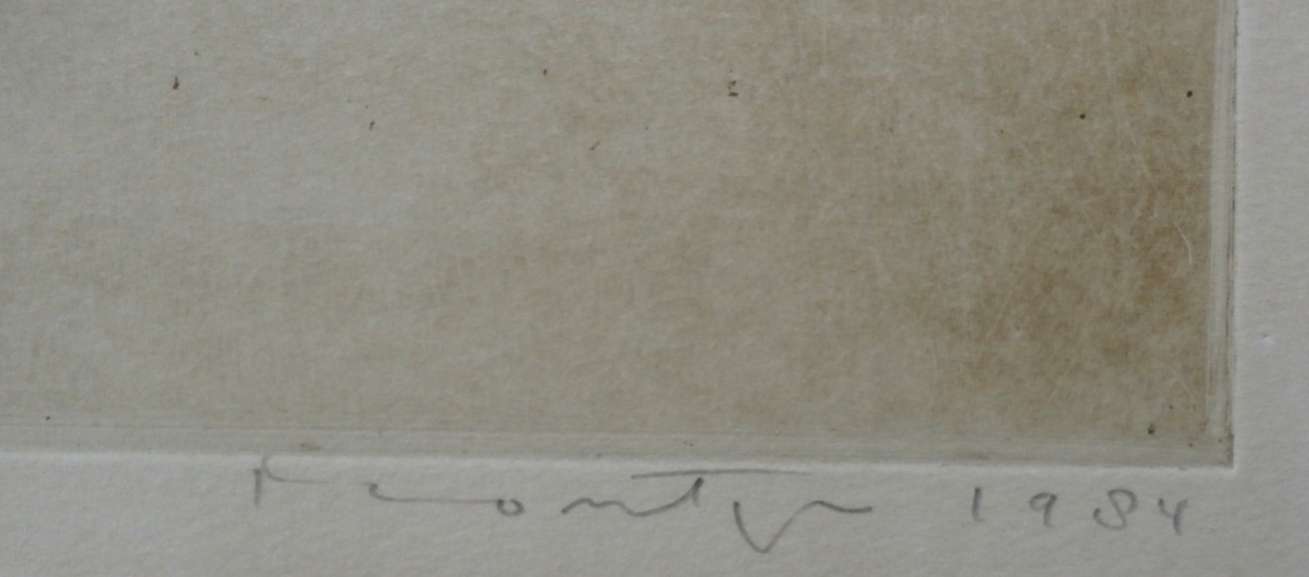 Conditie: in goede staat. Het werk heeft ingelijst gezeten want het is heel licht verkleurd binnen de randen van het oude passe-partout, goed ingelijst met nieuw passe-partout valt dit niet meer op. Op de achterzijde zitten wat plakresten van een vorige inlijsting.