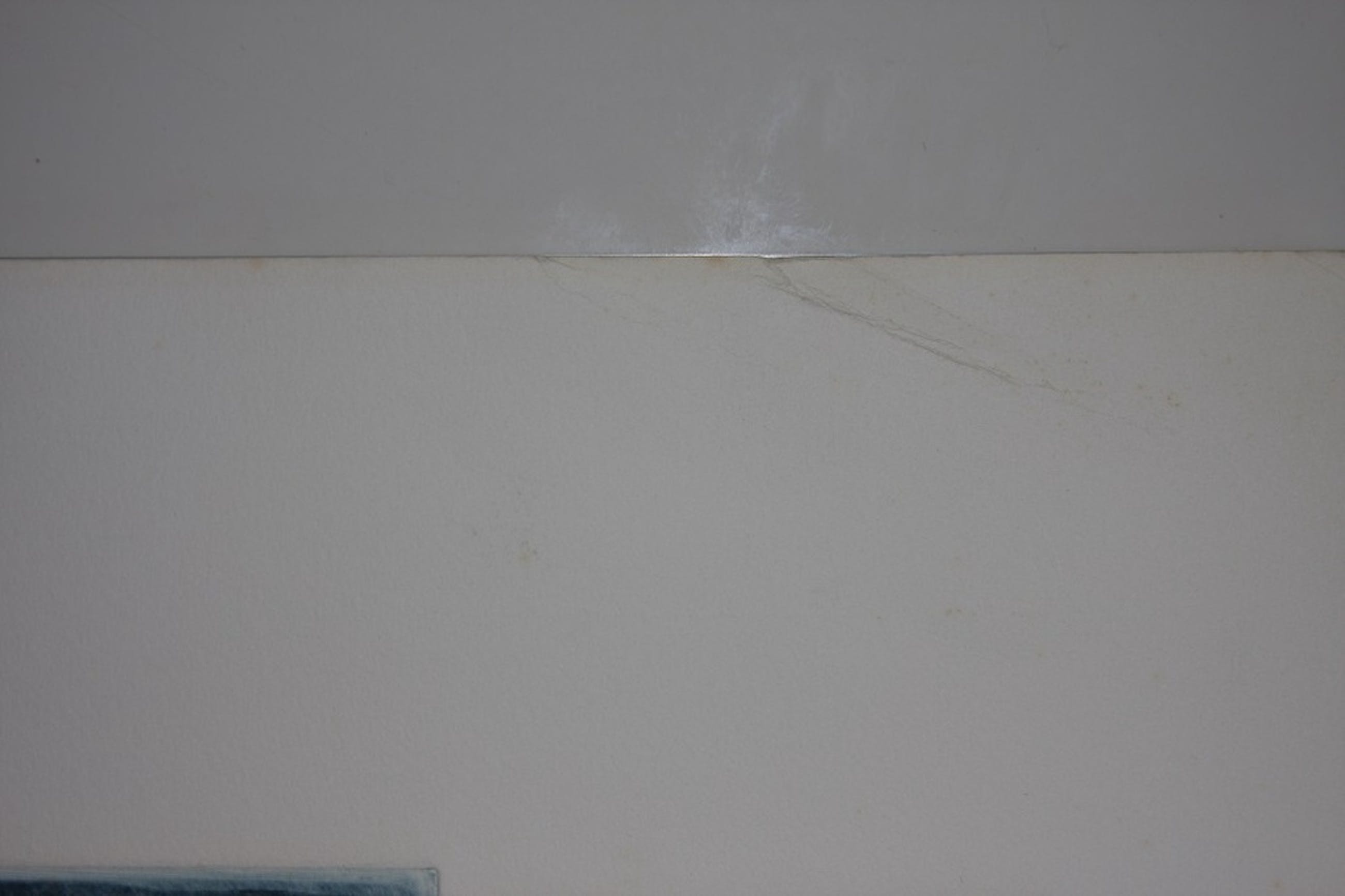 Het blad is 64x49 cm, het beeld 32x25 cm. Er zit een kreukel rechts boven aan de rand van het blad (zie detailfoto).