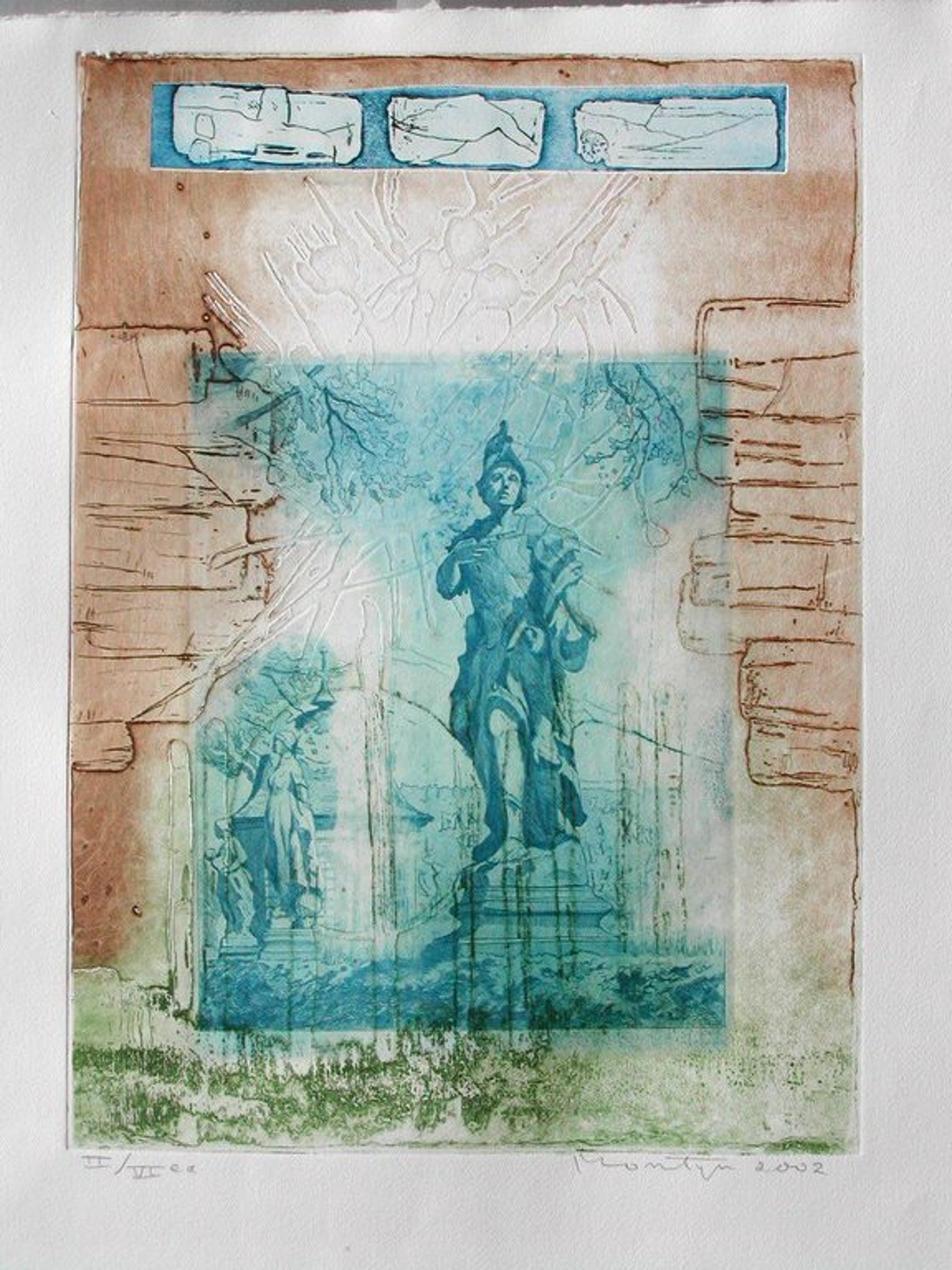 Vier etsen uit de Millennium serie "de Jaren" bestaande uit de jaren 0, 1000, 2000, en 3000. De bladmaat is 51 x 66 cm en de afbeeldingen zijn 39 x 48 cm. Rechtsonder met potlood gesigneerd Montyn 2000. Linksonder V/VI e.a.