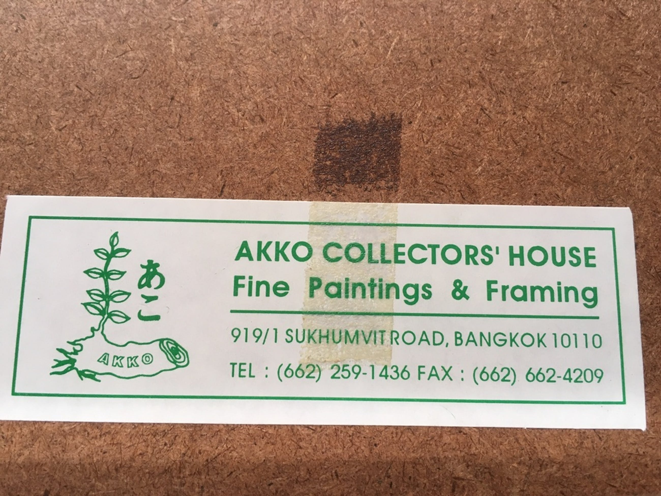 Aanbieder verwierf dit werk rechtstreeks van de kunstenaar op een tournee in Thailand waar het blijkens een sticker aan de achterzijde ook werd ingelijst.