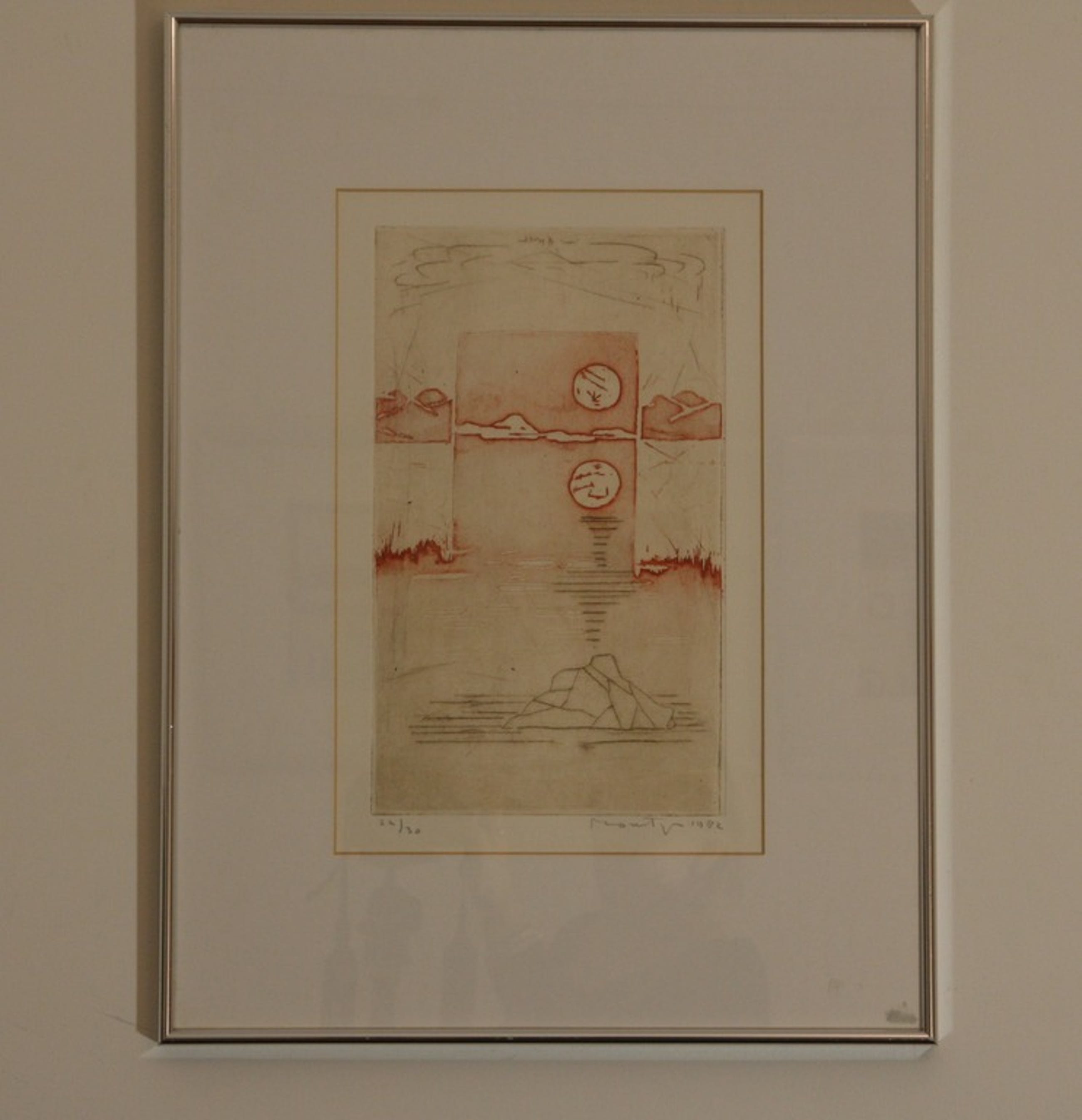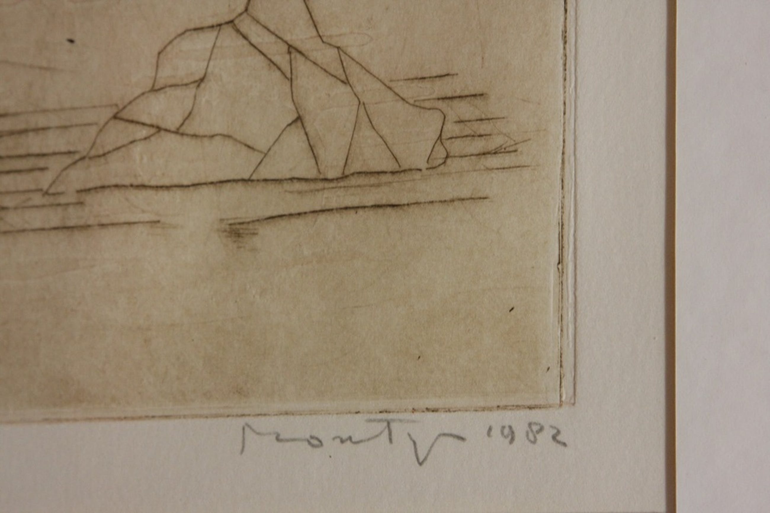Ingelijste ets van Jan Montyn uit 1982, nr. 22/30. Handgesigneerd met potlood.