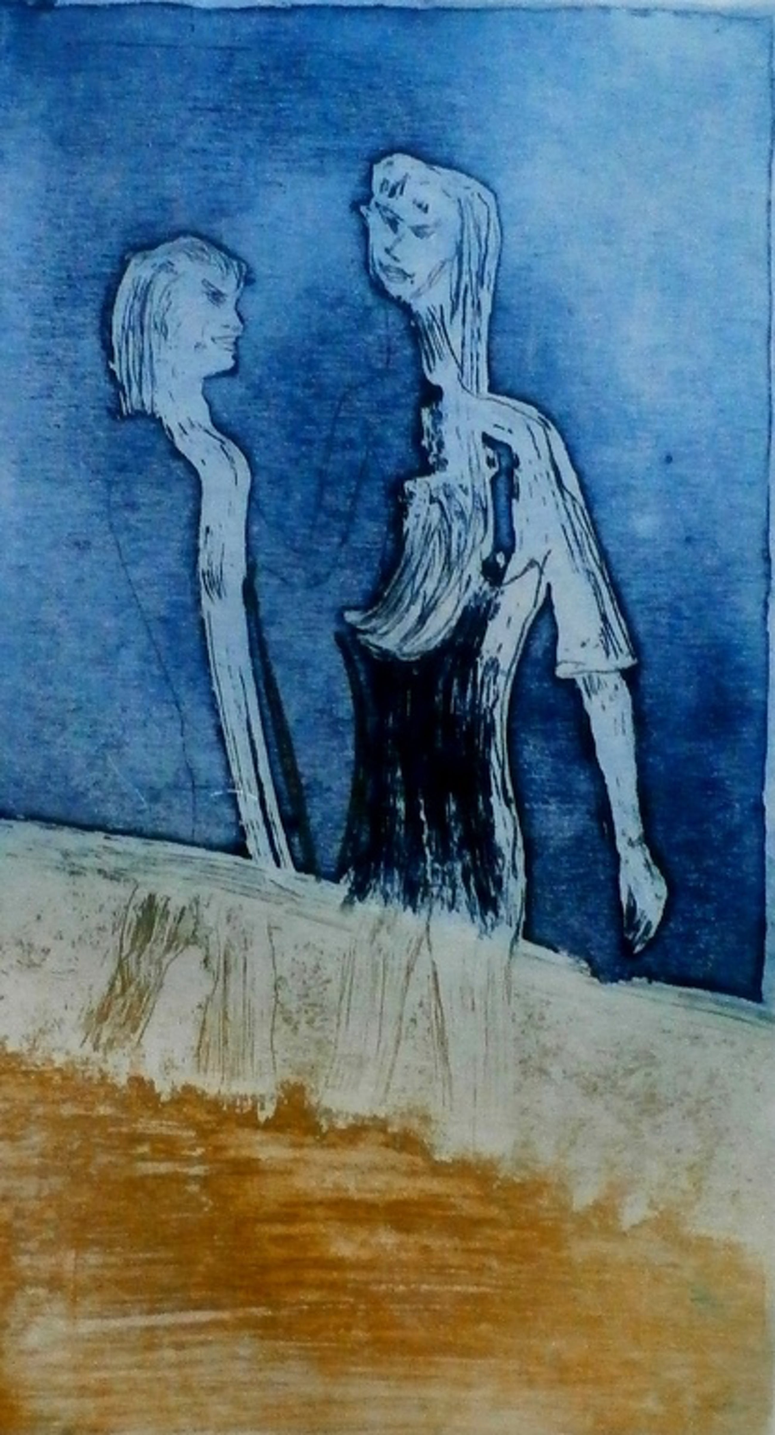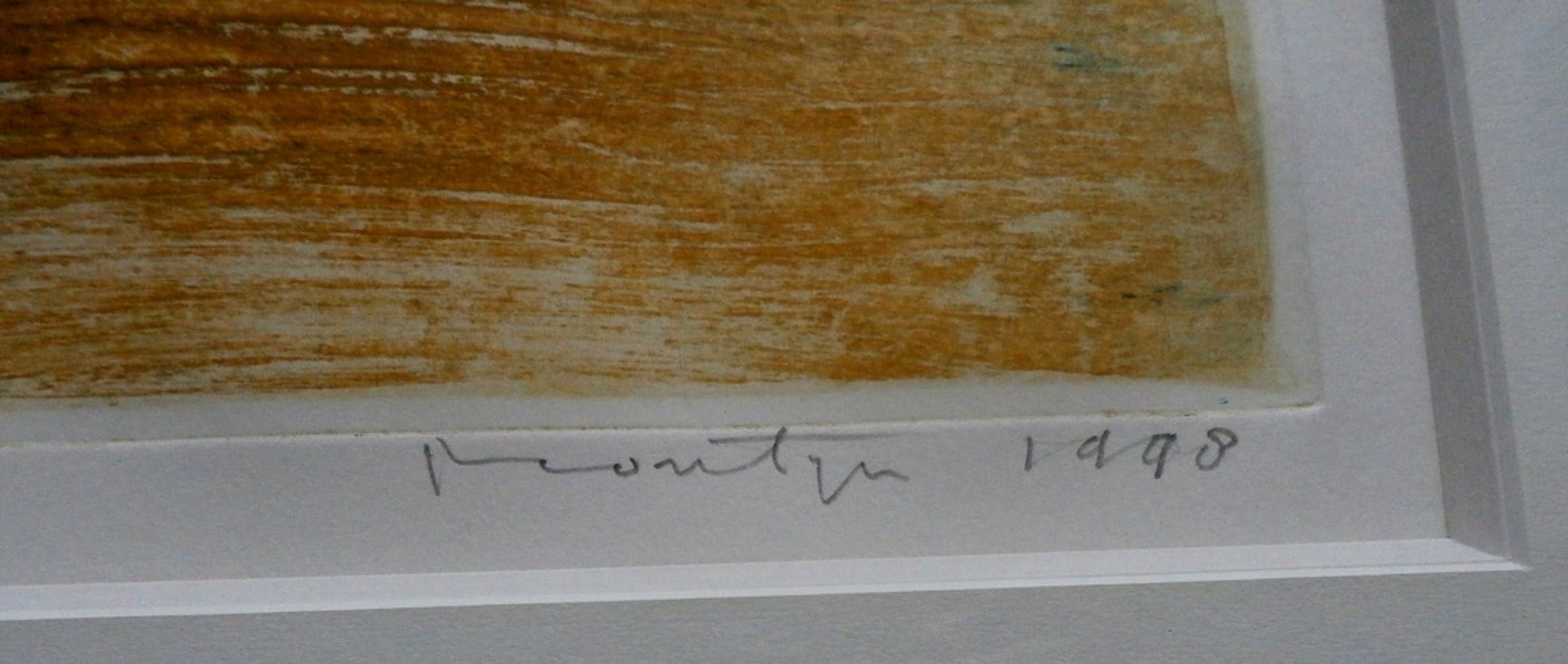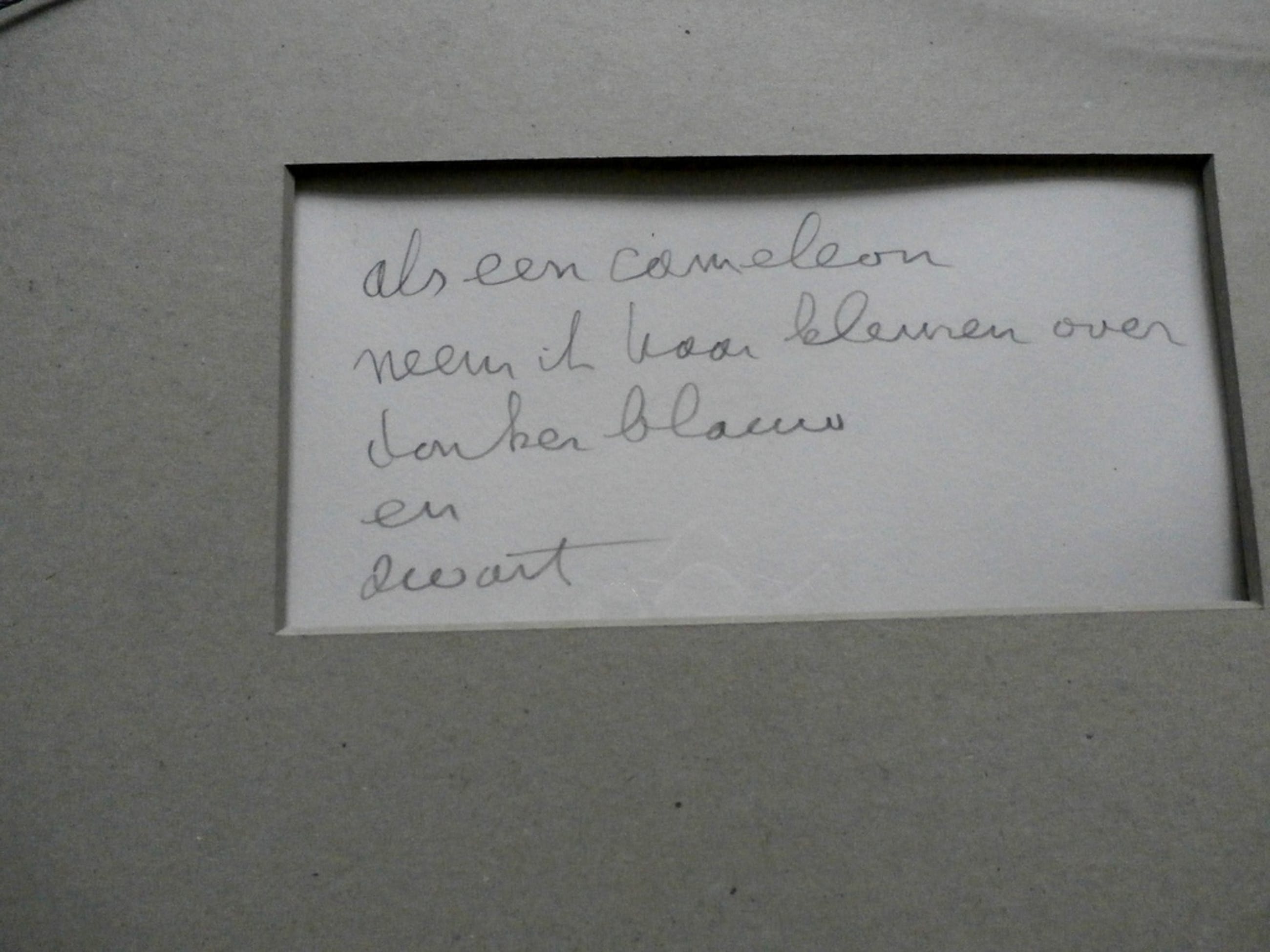 Ingelijste ets van Jan Montyn uit 1998. Titel: Als een cameleon neem ik haar klauren over, donkerblauw en zwart. Nummer: 15/35. Afmetingen voorstelling: h44 x b24 cm. Afmetingen incl. lijst: h68 x b48,5 cm. De authenciteit van het, aangeboden, werk wordt voor 100% gegarandeerd.Een certificaat van echtheid kan, op aanvraag, worden meegeleverd.