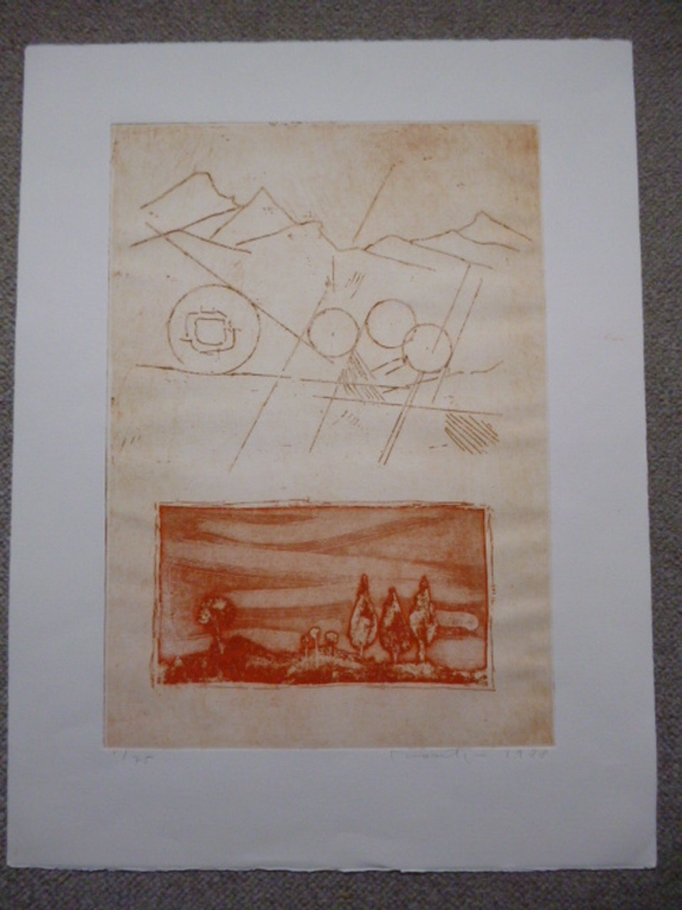 Kleurets, potlood gesigneerd en gedateerd 1988 rechtsonder. Genummerd 1/75 linksonder.