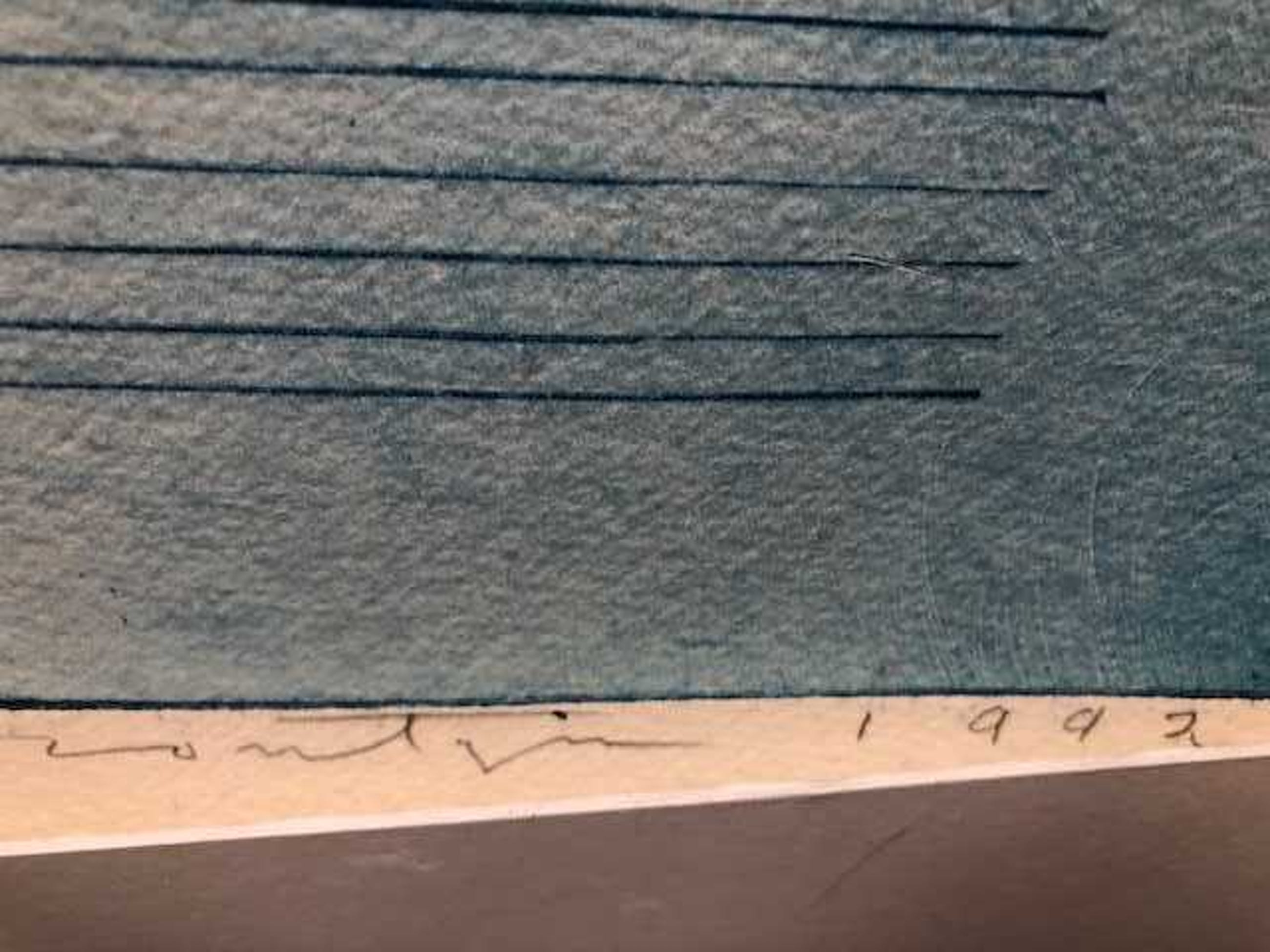 Ingekleurde ets, gesigneerd rechtsonder het beeld, Montyn 1992. Linksonder de nummering: 11/25. De handtekening en nummering zitten onder het passe-partout.