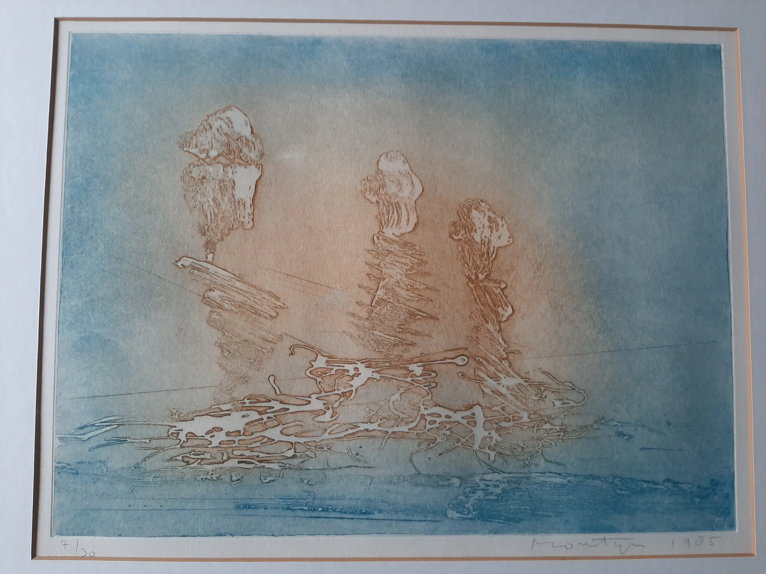 Stilistisch gezien is het werk van Montyn niet onder te brengen in een bepaalde richting of stroming in de beeldende kunst. Aanvankelijk werkte hij heel traditioneel en figuratief, maar aan het begin van de jaren zestig kiest hij voor een gestileerde, vaak abstracte beeldtaal vol persoonlijke tekens en symbolen. Grafiek hanteert hij niet uitsluitend als een vermenigvuldigingstechniek, maar als een medium om te komen tot een eigen stijl met een eigen idioom. De eerste experimenten met de etstechniek worden zonder kleur uitgevoerd, maar langzamerhand wordt de kleur een wezenlijk onderdeel van zijn werk. Kleur, vorm, lijn en inhoud worden op monumentale wijze samengevoegd tot een geabstraheerde beeldtaal. Op zinken platen werkt Montyn met gemengde etstechnieken zoals droge naald, aquatint en tailledouche. Zelf bedacht is de methode van het afdrukken van meerdere etsplaten op een grote plaat. Montyn drukt zijn prenten altijd zelf in kleine oplagen. Het belangrijkste thema in zijn werk is het landschap, als de projectie van de menselijke emotie. Montyn mediteert als het ware over het landschap. Zijn verbondenheid met het landschap en de aarde blijkt ondermeer uit zijn voorkeur voor de kleur omber die voor hem de aarde en alles wat daarmee samenhangt symboliseert. Verre reizen, in het bijzonder naar Zuid-Oost Azië, zijn een belangrijke inspiratiebron in zijn werk. In Zuid Frankrijk, Thailand en Nederland heeft hij min of meer vaste verblijfplaatsen.
