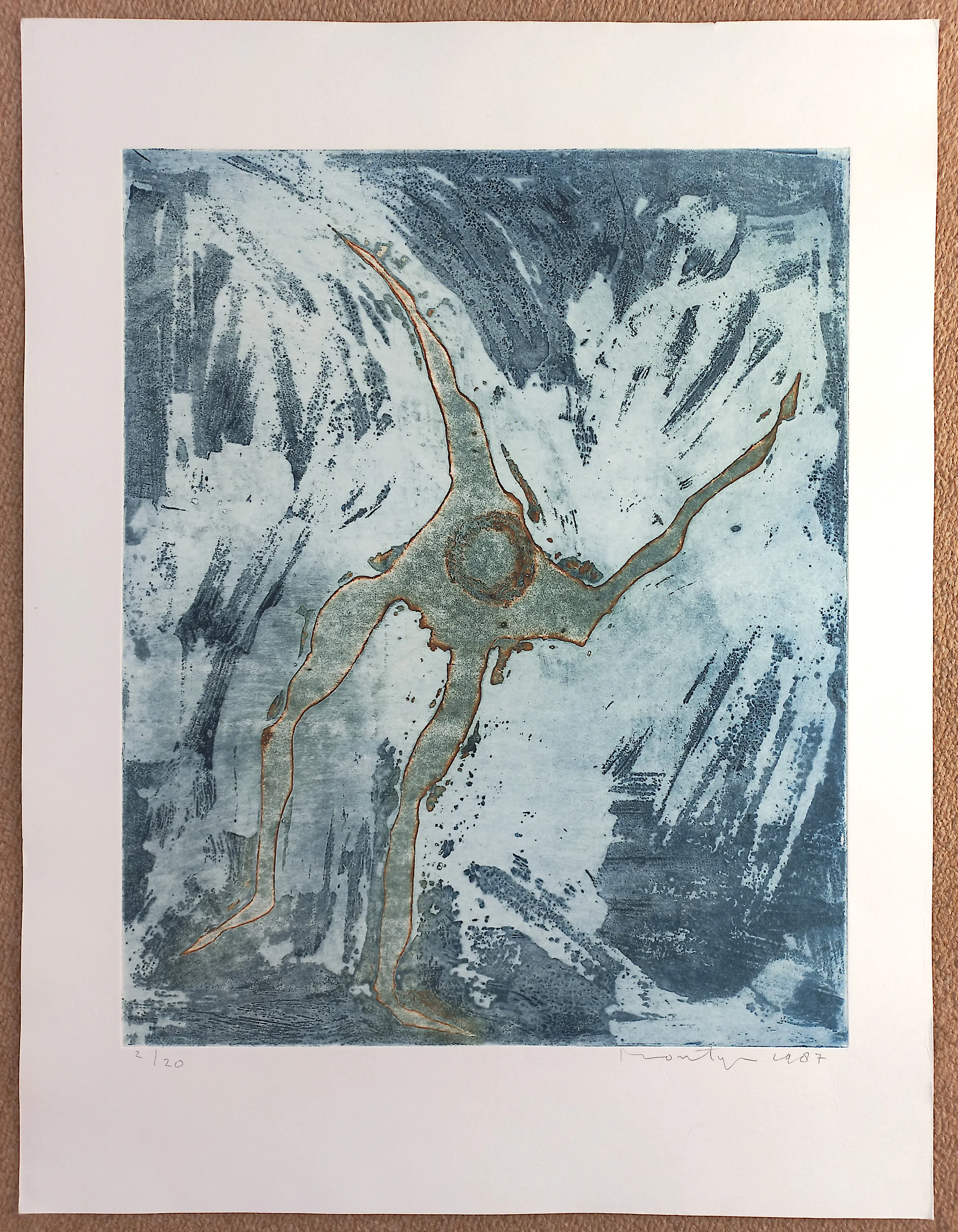 Mooi werk van Jan Montyn, uit een kleine oplage. Aquatint ets op geschept papier, met potlood gesigneerd, gedateerd (1987) en genummerd (2/20), achterop met potlood door Montyn zelf getiteld. In zeer goede conditie.