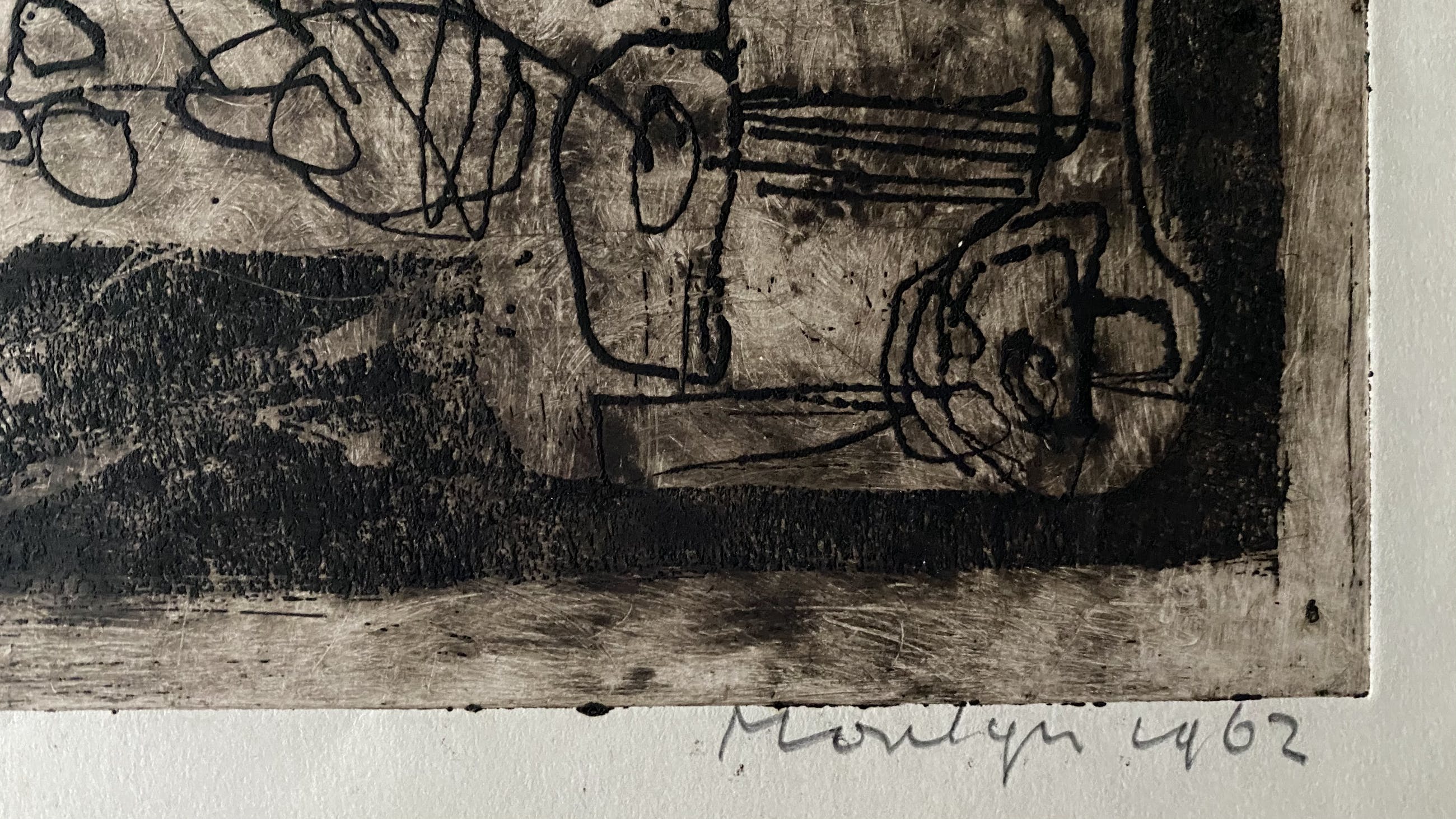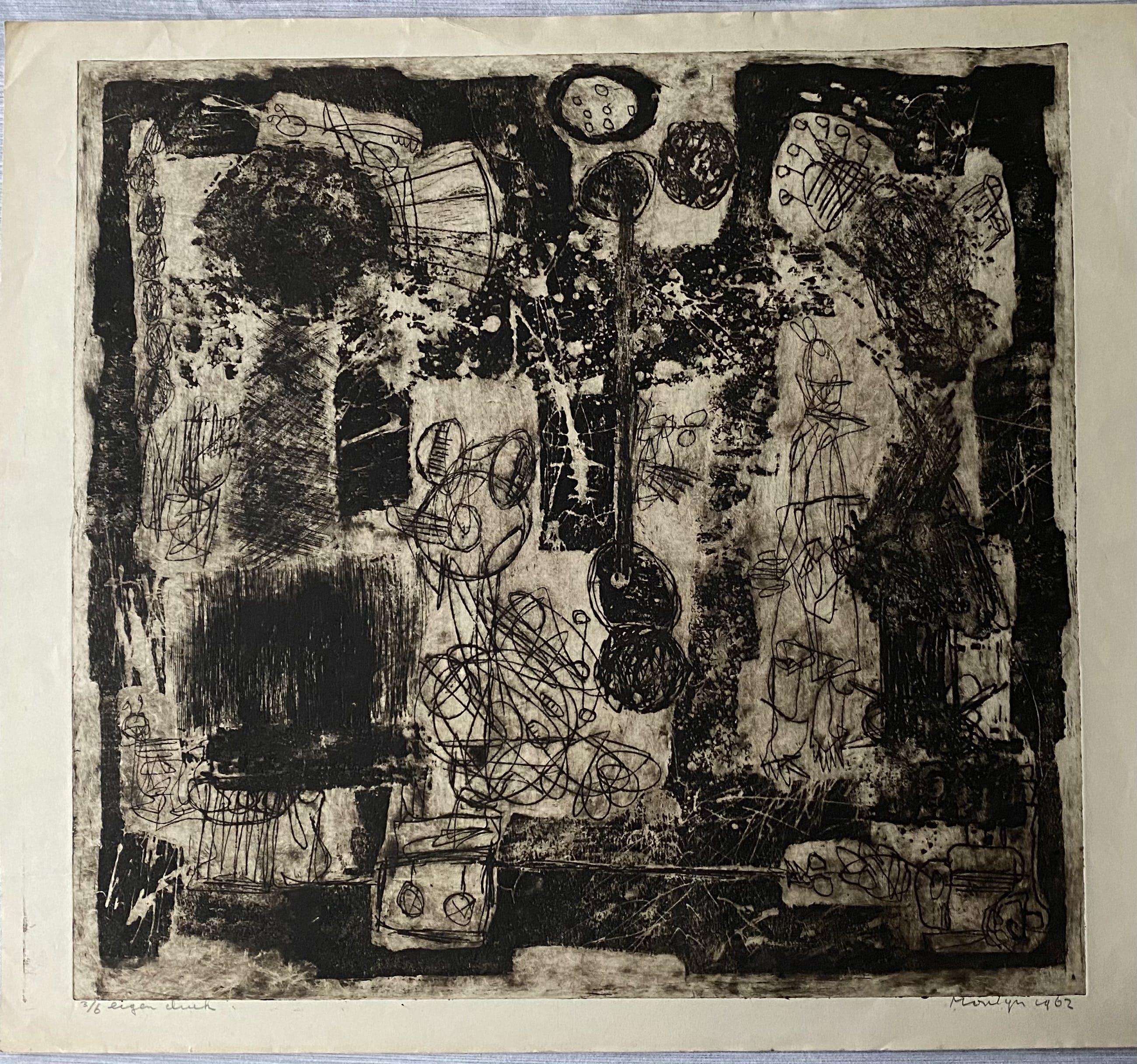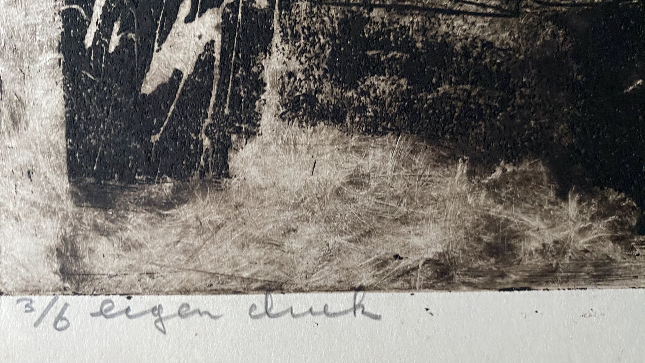 Uit nalatenschap verkregen fraaie ets van Jan Montyn uit 1962. Oplage 3/6 eigen druk. Getiteld: Mens en totemdier. De afmetingen zijn inclusief rand, waar wat ouderdomsverkleuring te zien is. Gezien de leeftijd van de ets is de conditie zeer goed. Voor de liefhebber.