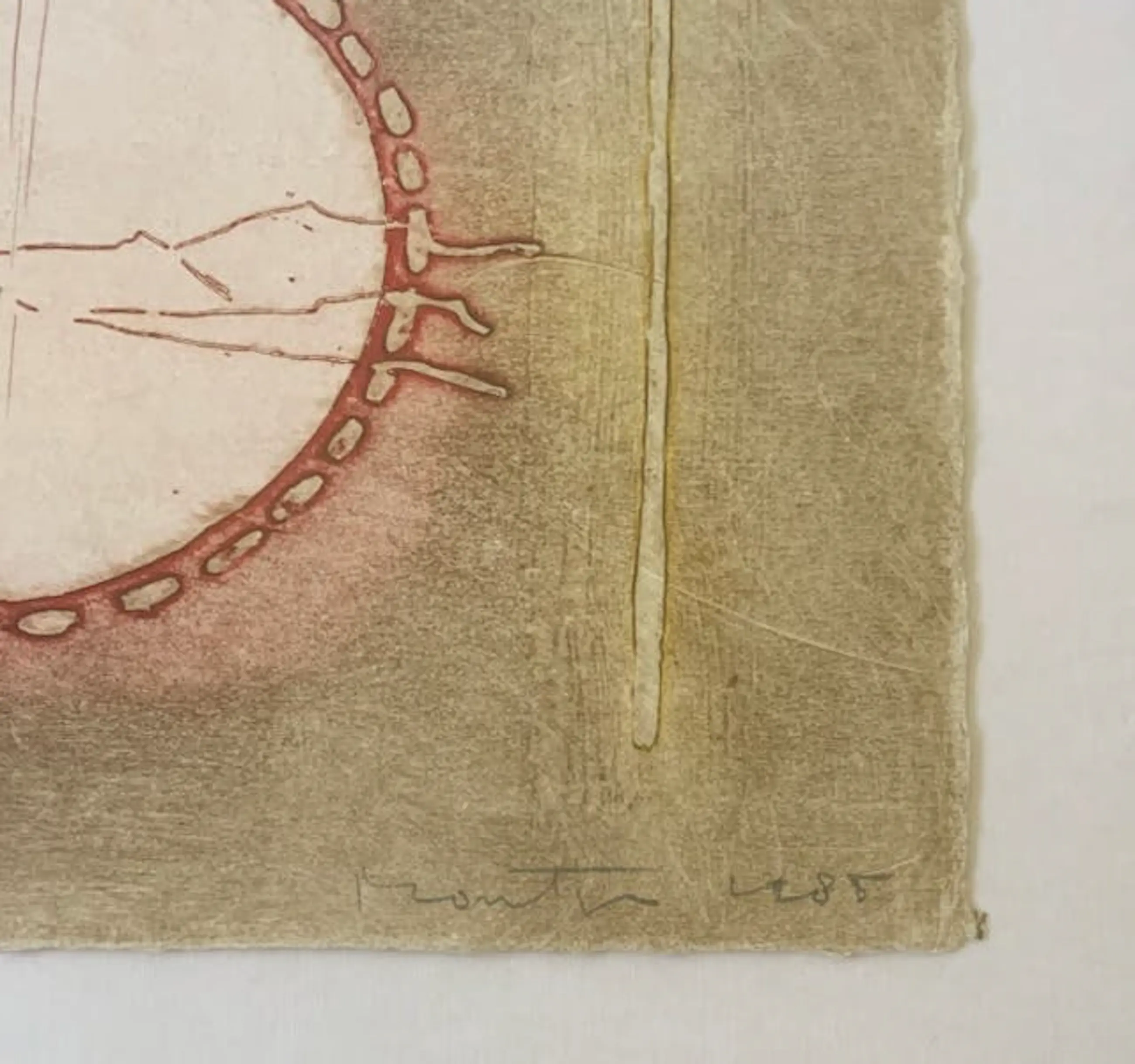 Mooie, dromerige ets in warme kleuren van Montyn (1985), in goede staat. Het is nummer 16 uit een oplage van 40.