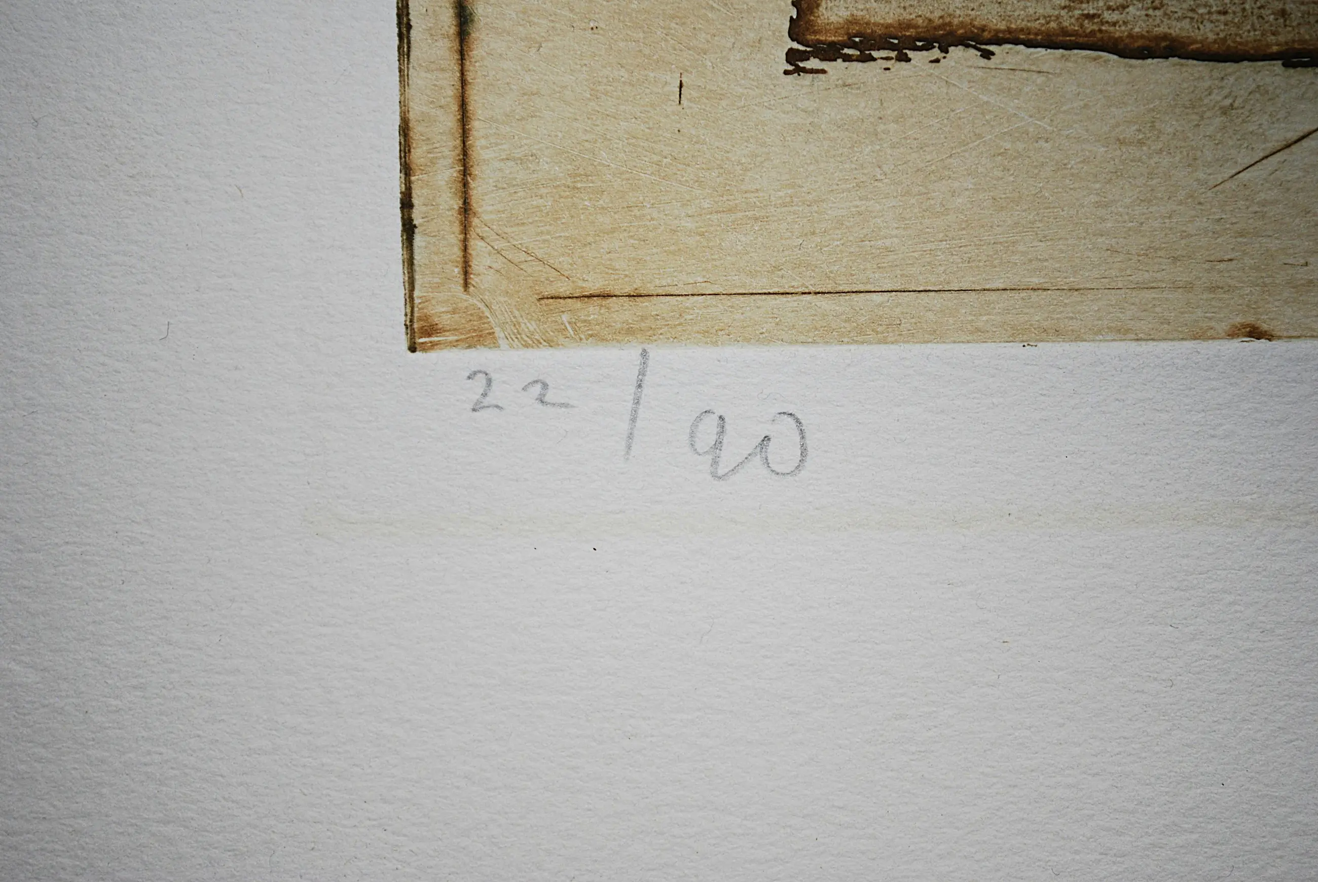 Het blad is los geplaatst achter glas. In een fraaie, robuuste aluminium lijst met halfrond profiel. Waarde destijds Eu.476,= Let op: Dit item wordt uitstekend verpakt.