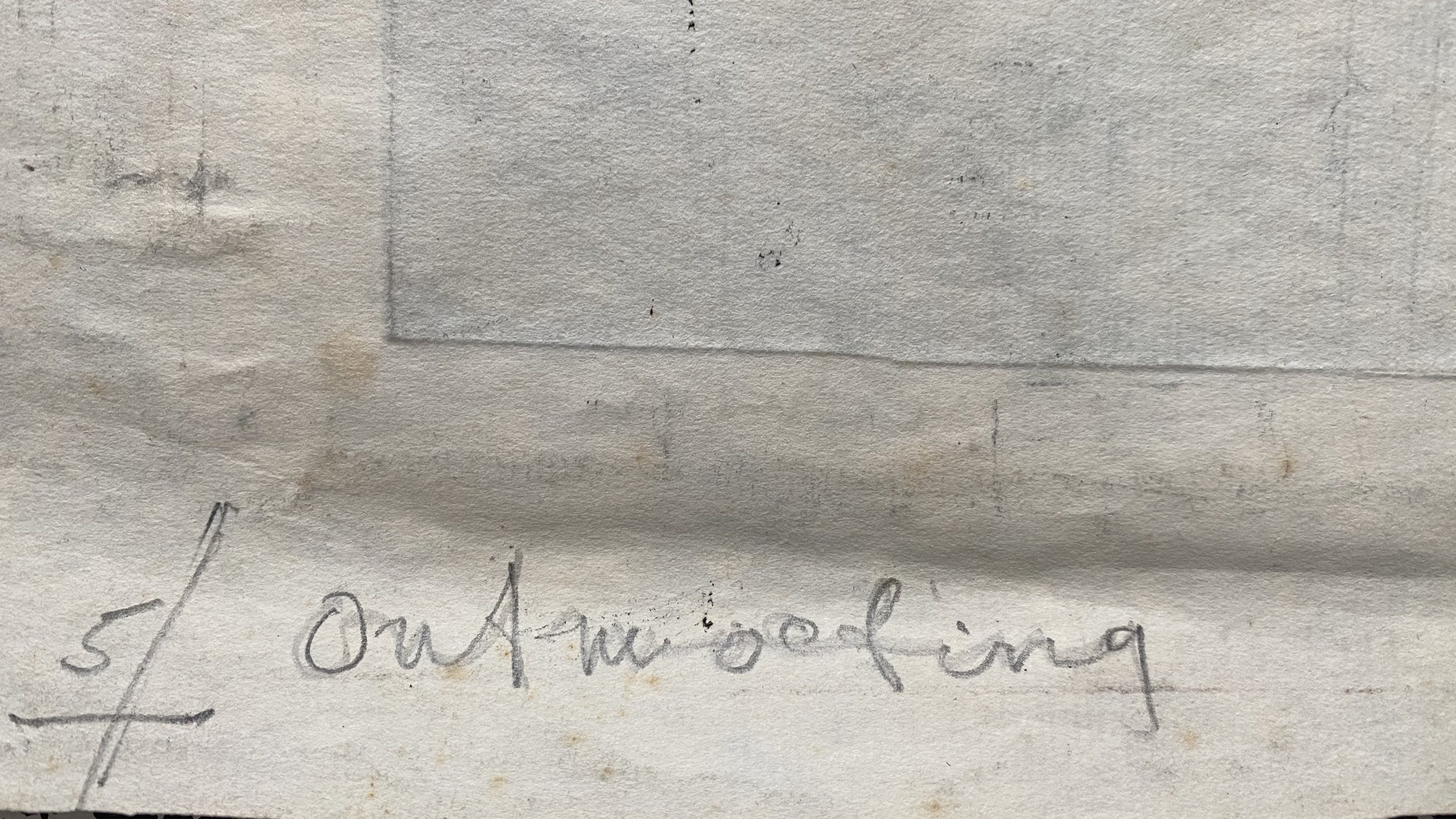 De ets is gedrukt op dun papier. Ingelijst geweest, wat lijmresten. Maar in passe-partout niets van te zien. In goede staat gezien ouderdom.