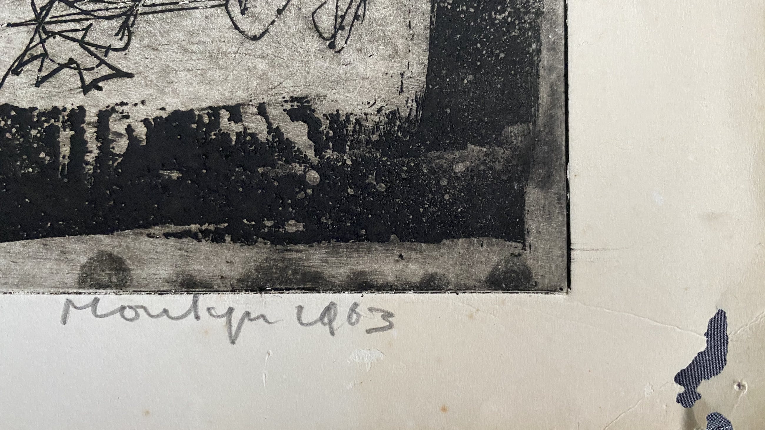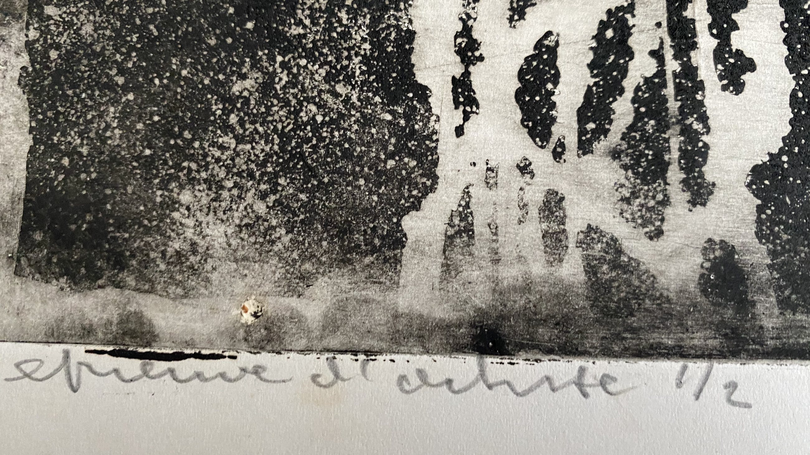 de ets is gedrukt op dik papier. Klein gaatje rechtsonder in rand, maar valt geheel weg in passe-partout.