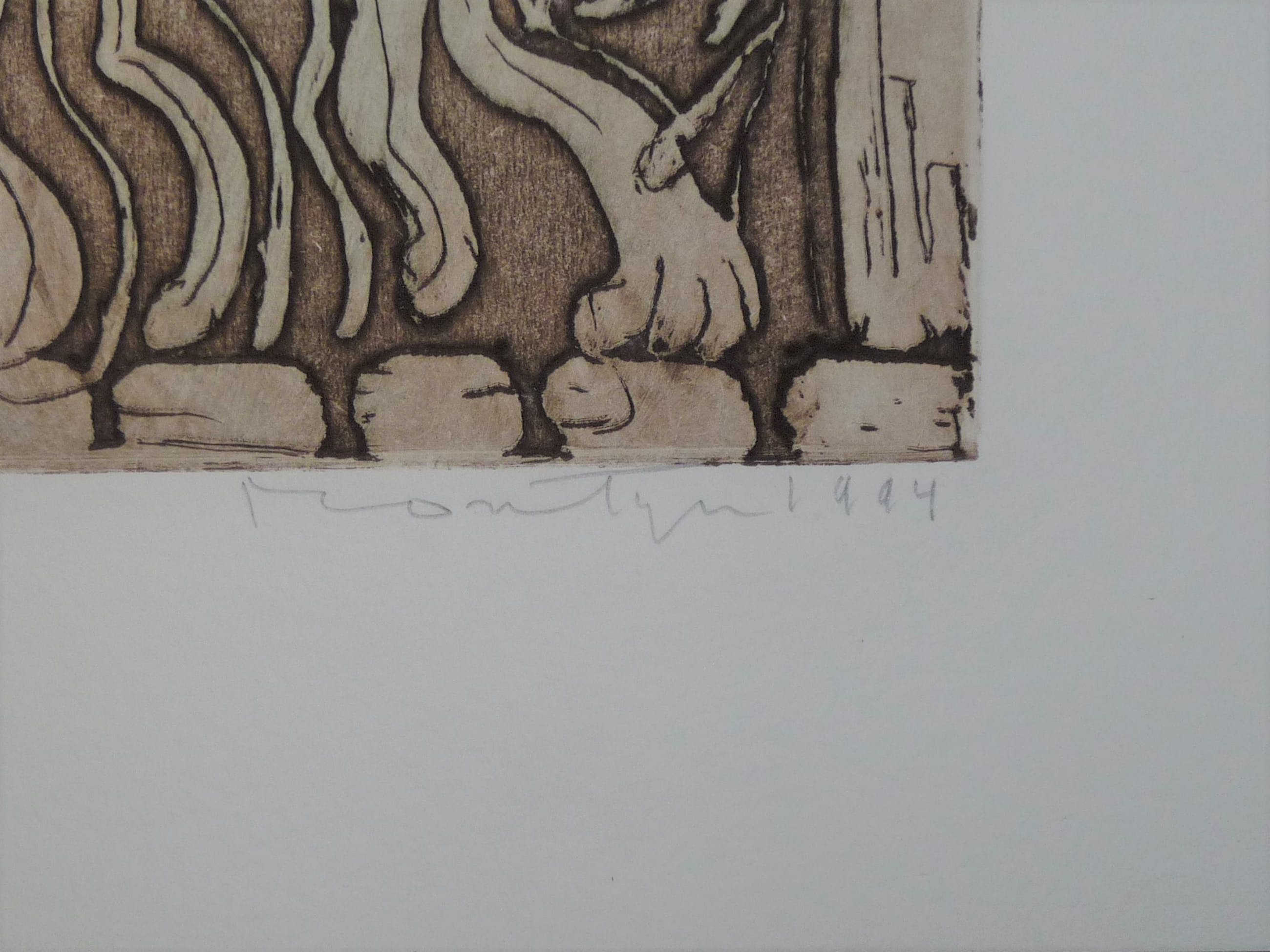 *Fraaie kleurenets op papier van de Nederlandse kunstenaar Jan Montyn. *Papiermaat 60 x 50 cm. Beeldmaat 45 x 33 cm. *Van links naar rechts in potlood: 2/20 - Montyn 1994 *Verzending is aangetekend, verzekerd en goed verpakt.
