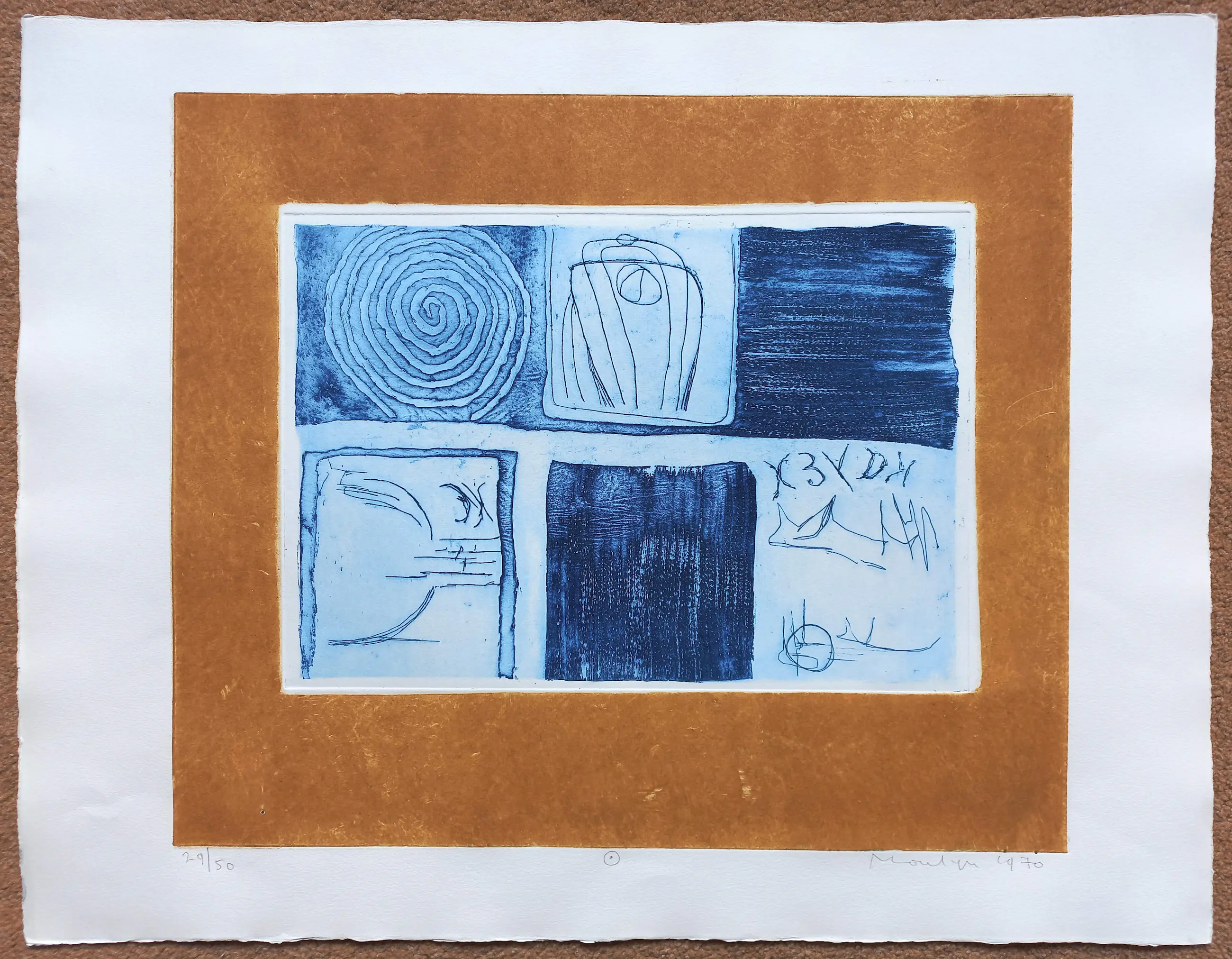 Zeer mooie ets van Jan Montyn uit de serie “Des sceaux des Planetes”. Aquatint ets op geschept papier, met potlood gesigneerd, gedateerd (1970) en genummerd (29/50). In zeer goede conditie.
